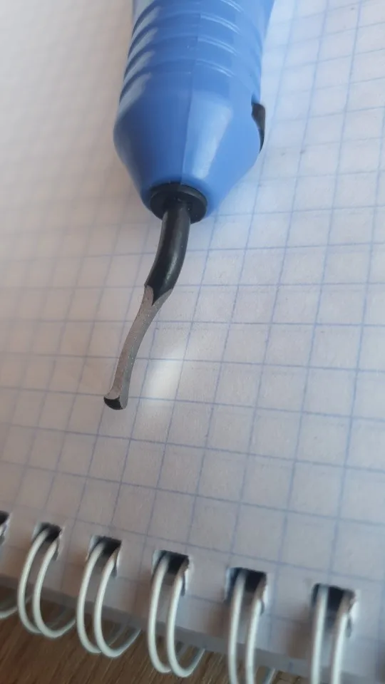 Лично мне скребок совсем не понравился. Для моих целей не подошёл. Может PLA или ABS он и обрабатывает нормально, я не проверял, но изделия из смолы или PETG обрабатывает так себе. Проще скальпелем пройтись. Наконечник невозможно зафиксировать и он прокручивается в держателе, это плюс в некоторых ситуациях, но когда надо что-то аккуратно подрезать, эта особенность делает эту задачу невозможной