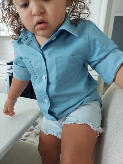Это не spijkerjas, не джинсовая ткань. Не падает как spijkerjas. Это просто синяя блузка низкого качества с надписью на спине.