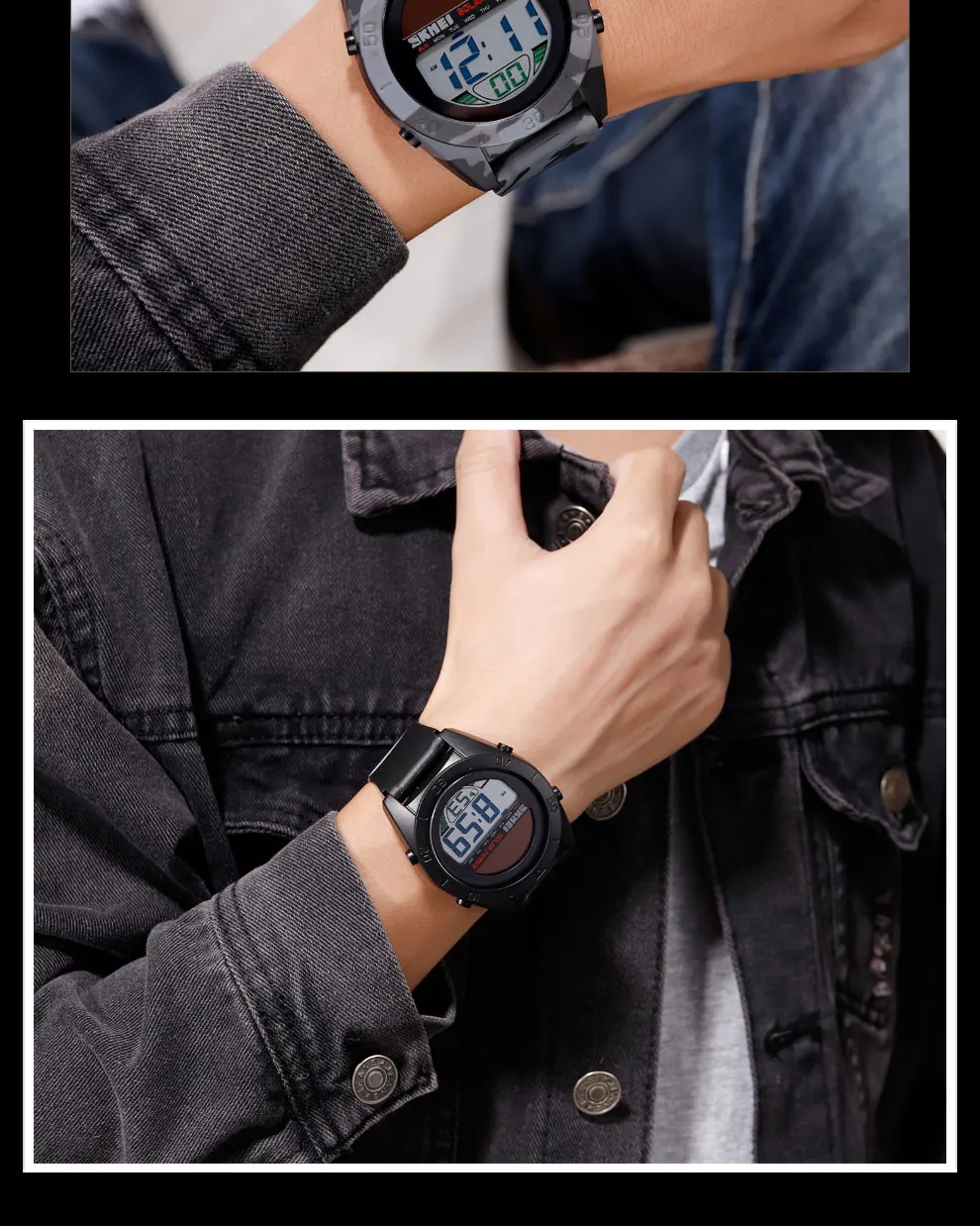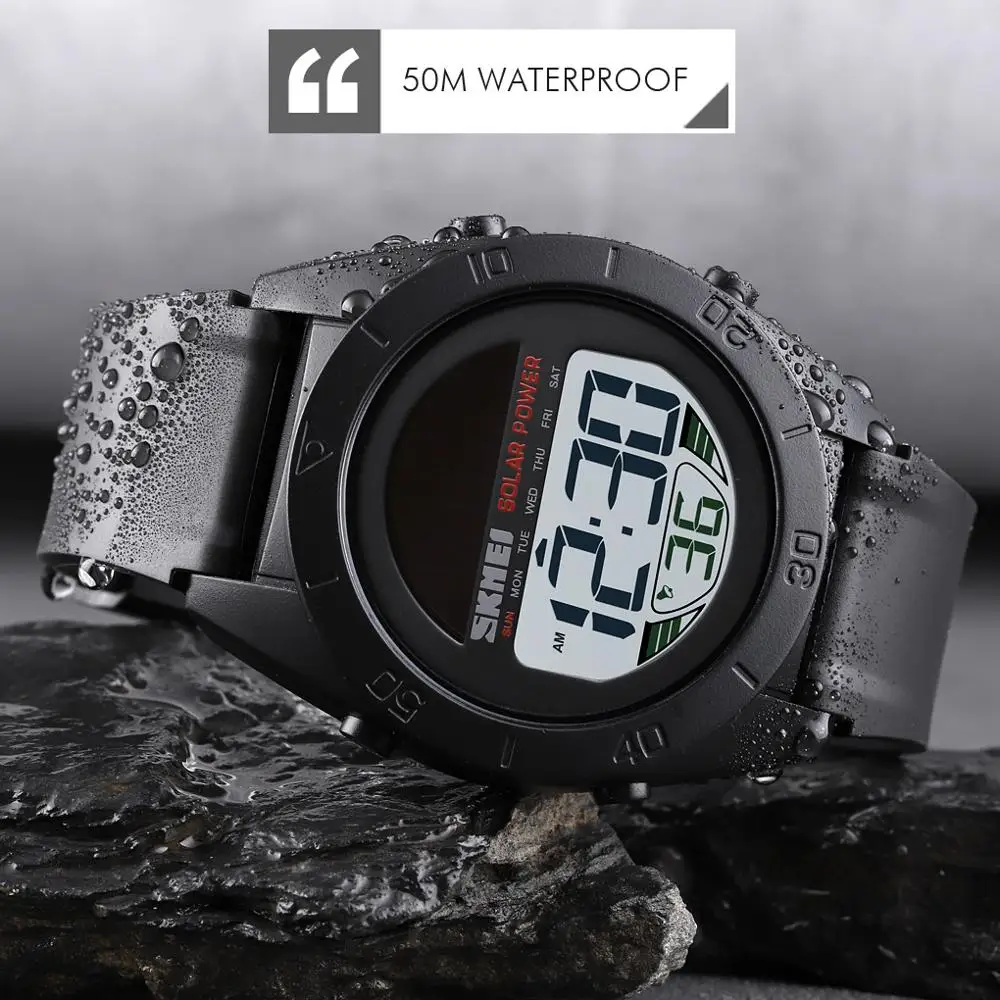 Часы наручные SKMEI мужские с солнечной батареей, модные водонепроницаемые брендовые светодиодные цифровые в стиле милитари, с хронографом и будильником