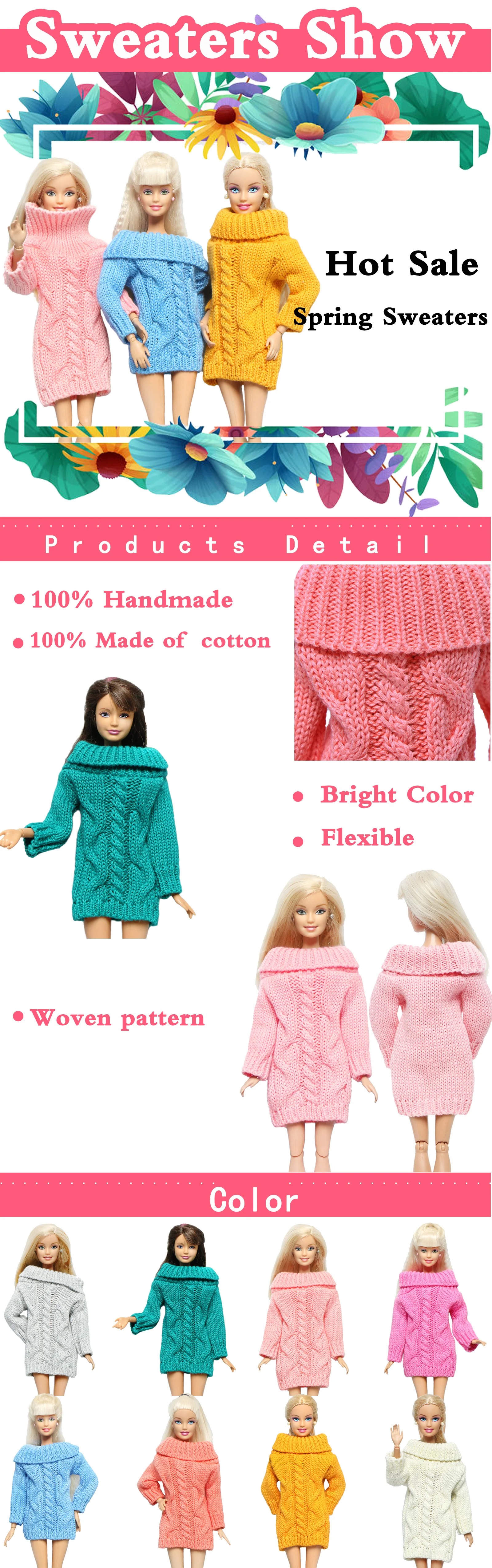 100% Одежда для куклы ручной работы свитер платье для куклы Барби зимняя одежда Вечерние смешанные цвета наряд принцессы аксессуары детские игрушки сделай сам