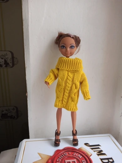 Хороший свитер для куклы. Немного торчат нитки, но не критично. Дочке понравился.