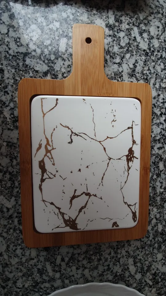 С виду доска красивая. Края мрамора не плотно прилегают к основанию доски. Долгая доставка. Упаковано было хорошо.
