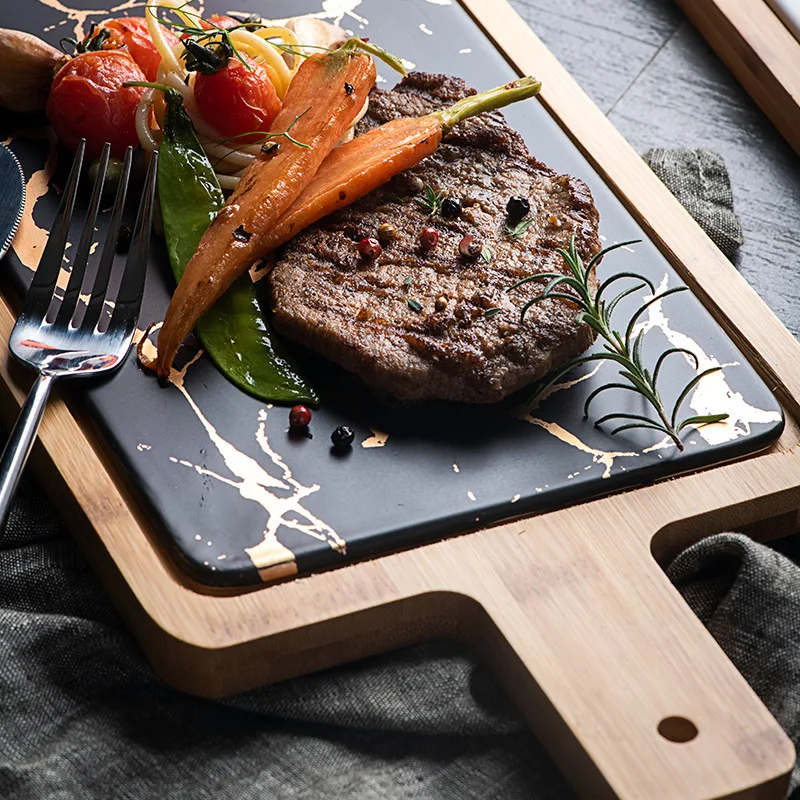 Керамическая круглая тарелка под Золотой Мрамор в скандинавском стиле для дома, текстурная пластина, для западного стейка, тарелка для десерта, квадратный поднос, кухонный поднос для столовых приборов