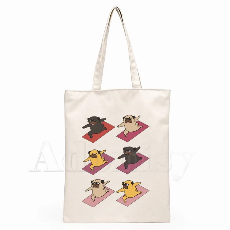 Женские сумки для йоги, мопса, тканевая сумка-тоут, сумка для шоппинга, путешествий, женские многоразовые сумки через плечо, Bolsas De Tela