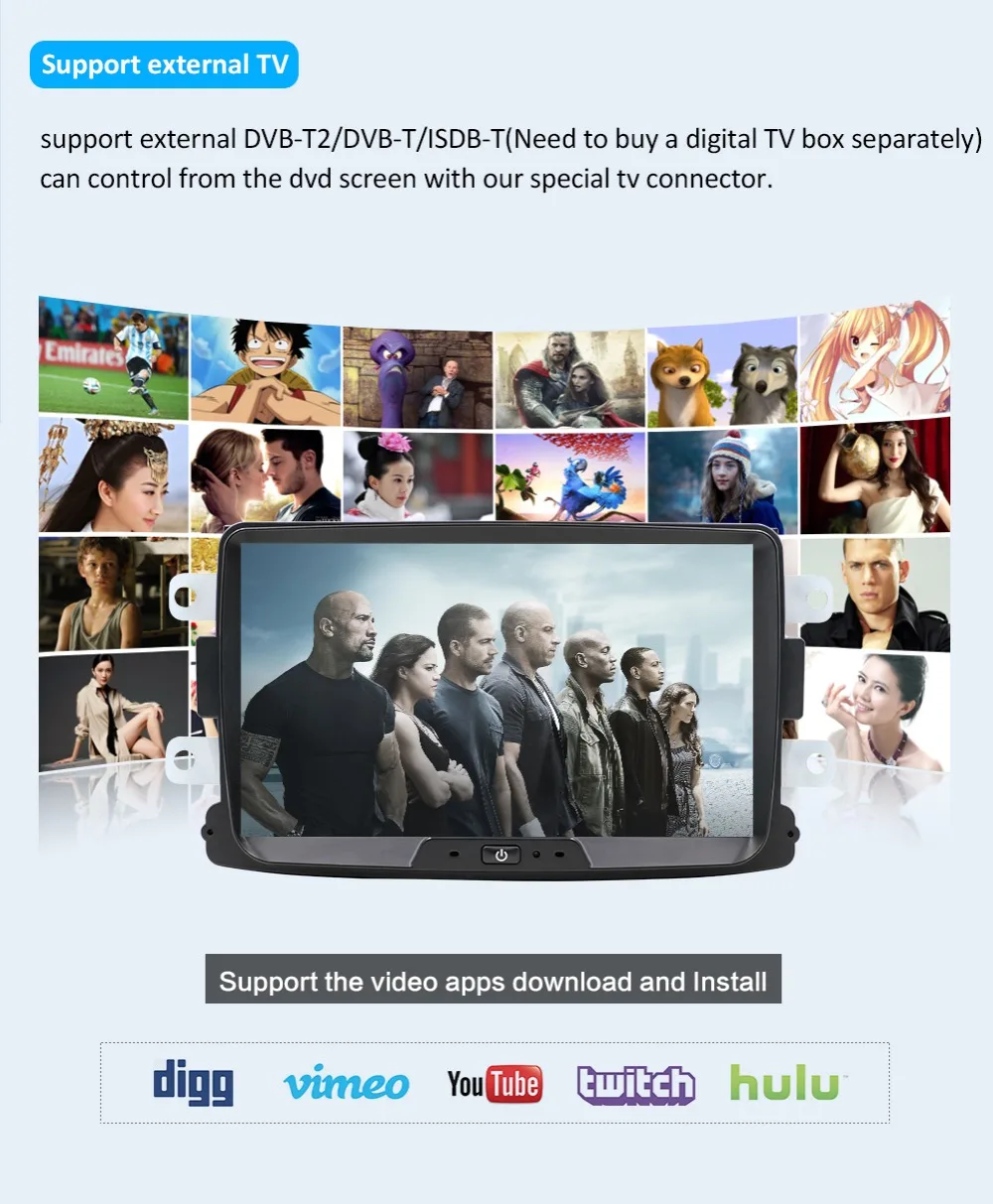 Optional3G Dongle,Digital TV,OBD,DVR,canbus.External microphone