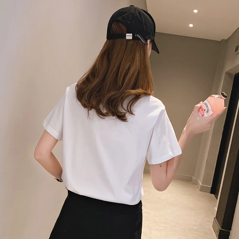 Точная поддержка запасов с подтверждением на женской белой хлопковой футболке большого размера с коротким рукавом