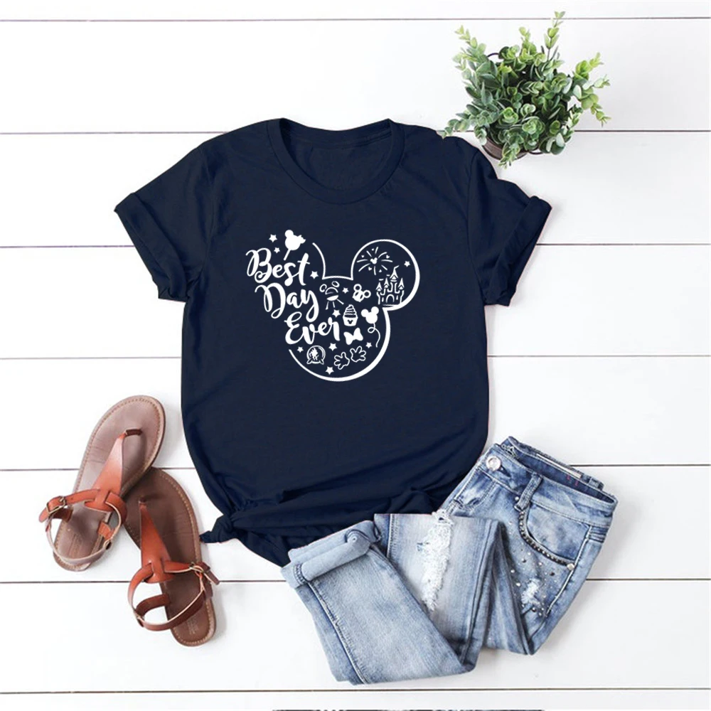 Женская футболка Best Day Ever, рубашка с Минни Маус, Микки-Маус, футболка в стиле Tumblr, милая Праздничная футболка