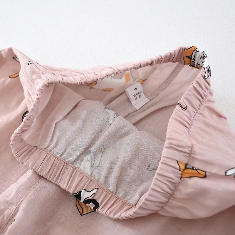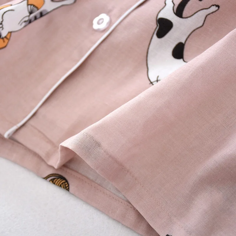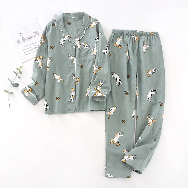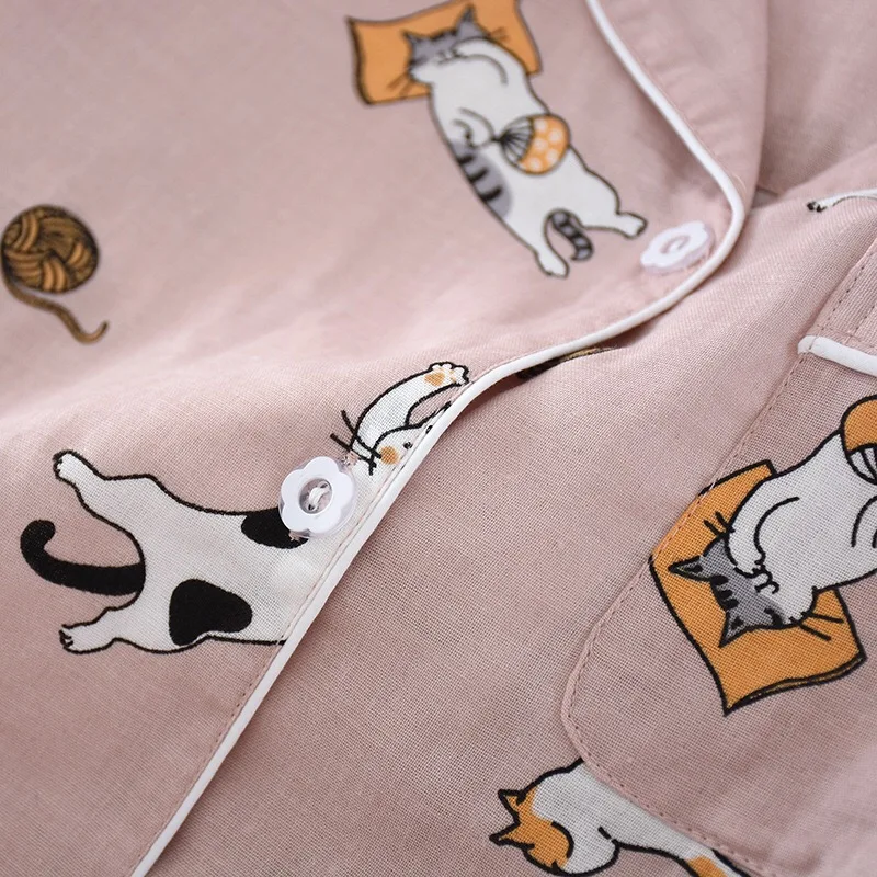 Женские пижамы набор 100% газовое хлопковое с мультяшным котом Пижа...