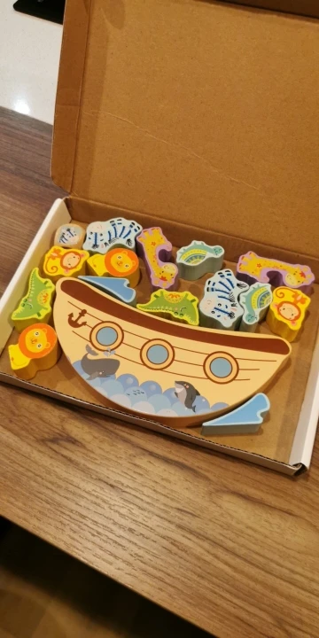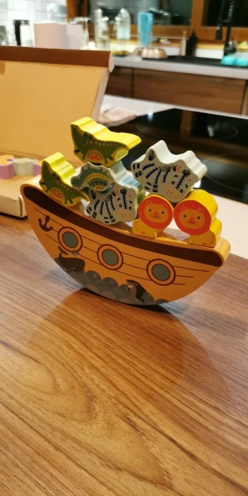 Прекрасный товар. Игра очень интересная для всей семьи) Бросаешь кубик, какой зверь выпадает - такой и нужно поставить в ковчег. Игра на баланс, у кого упал ковчег - проиграл . Очень качественная , дерево и рисунки красивые. Очень быстрая доставка . Рекомендую . Ребёнку 3 года)