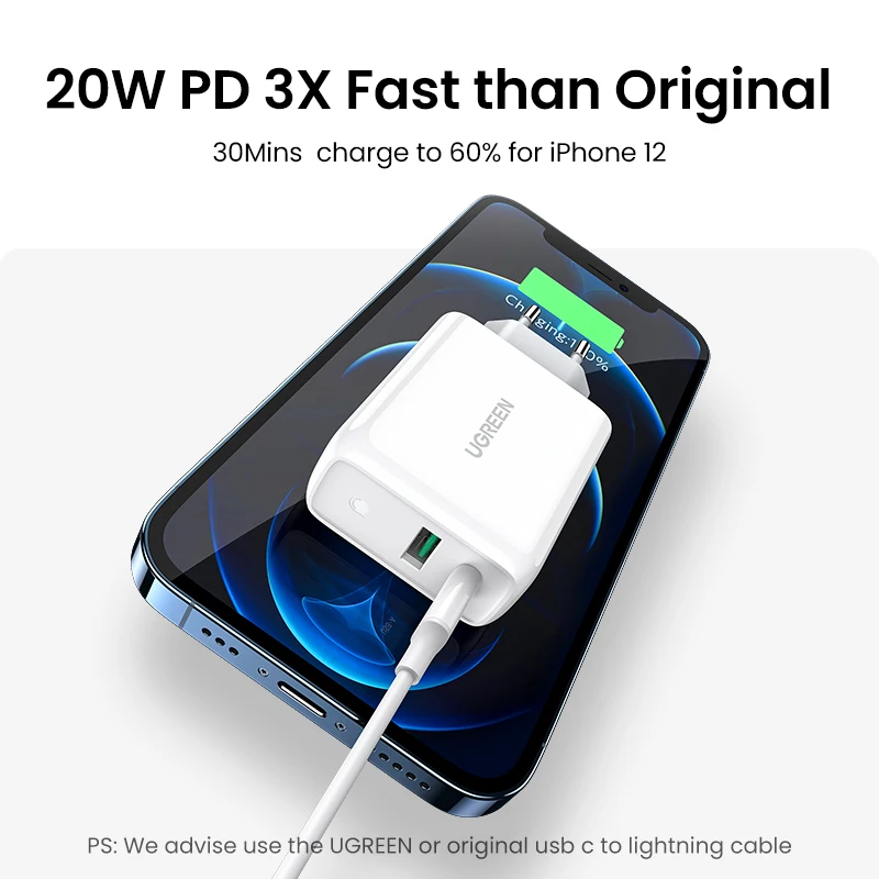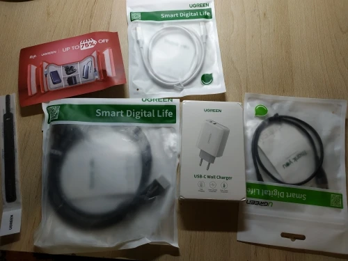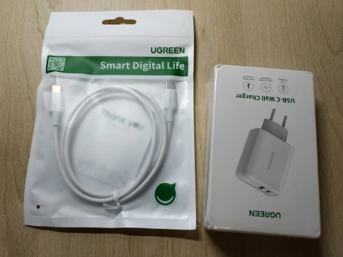 Взяла сразу комплект, вместе с кабелем от Ugreen. Быстрая зарядка отлично работает. Как всегда все качественно у них. Я довольна.