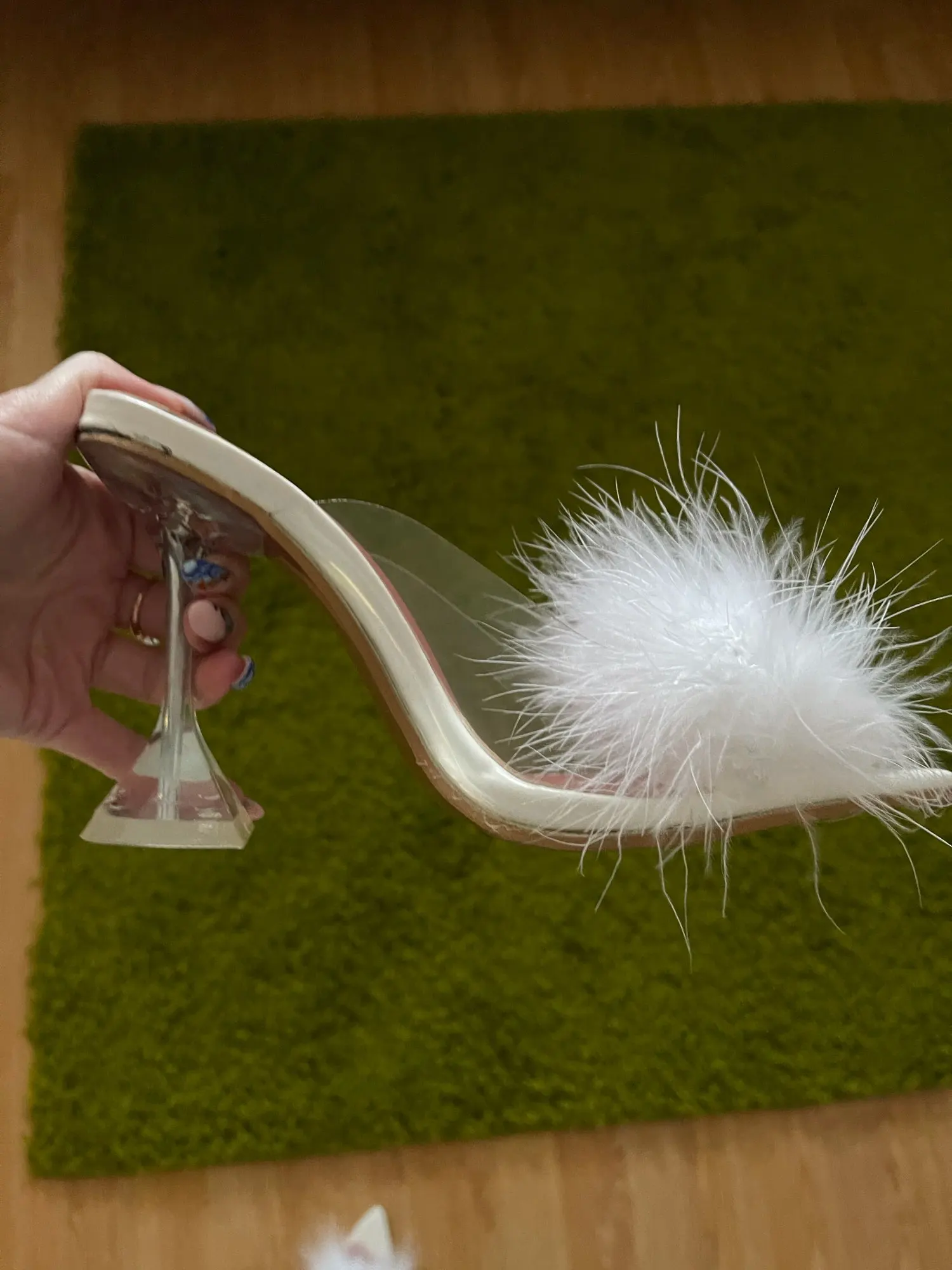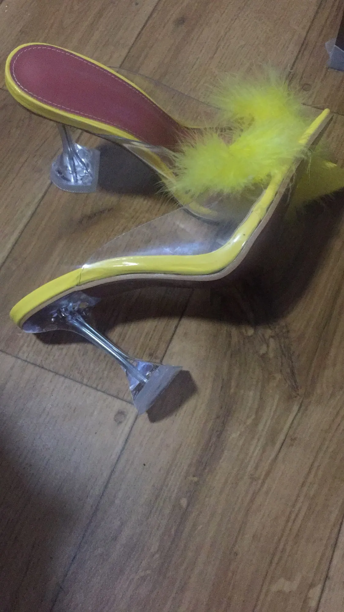Eilykenлетние женские туфли-лодочки; Прозрачные Шлепанцы из ПВХ на высоком каблуке с перьями и кристаллами; Мюли с открытым носком; Женские шлепанцы