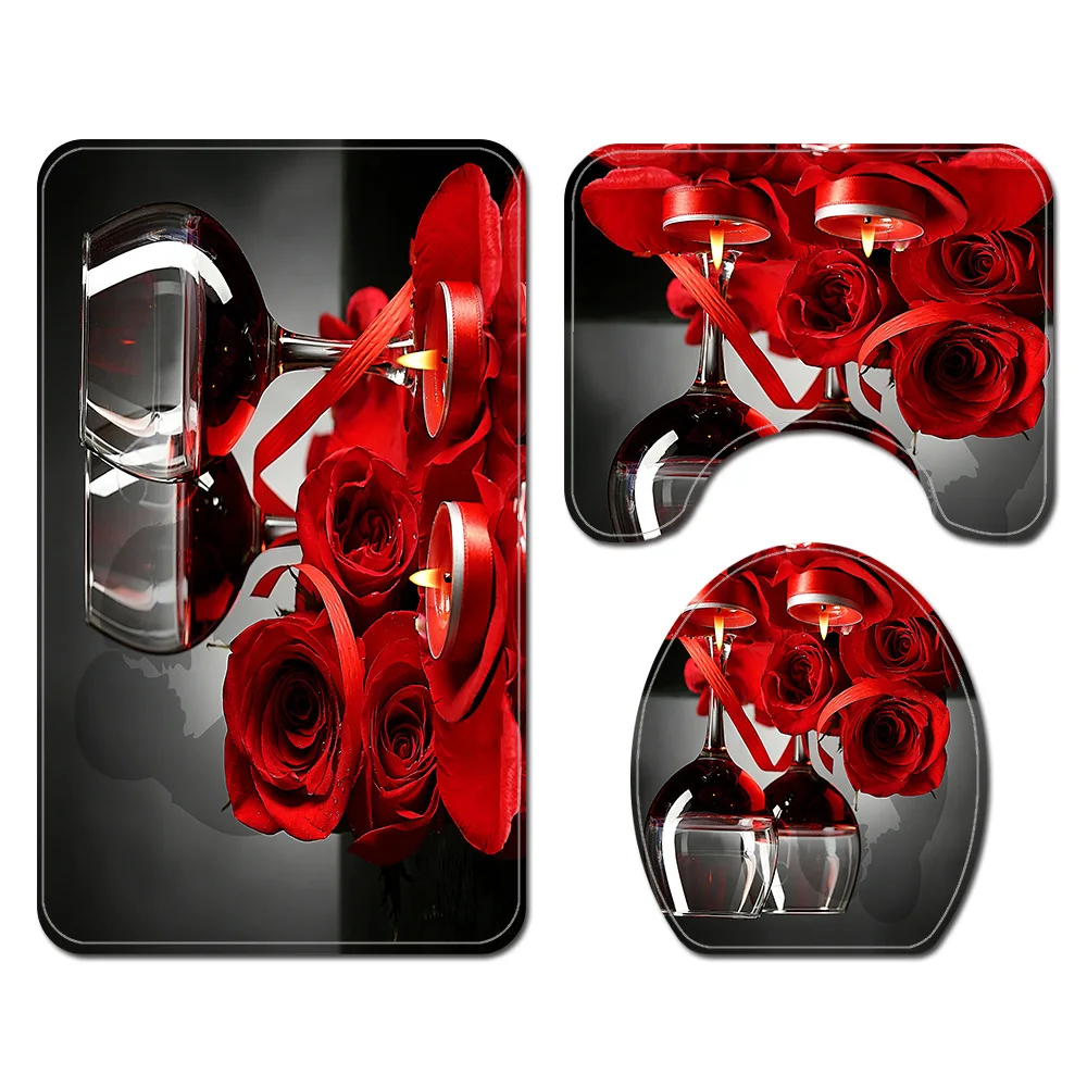 Zeegle Bath Mat Set Душ занавес для ванной вина Розовое Printed ванной крышки Туалет сиденья Мат водонепроницаемый занавес ванной комнаты