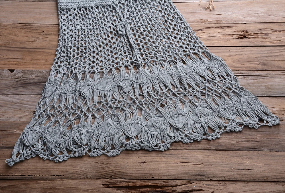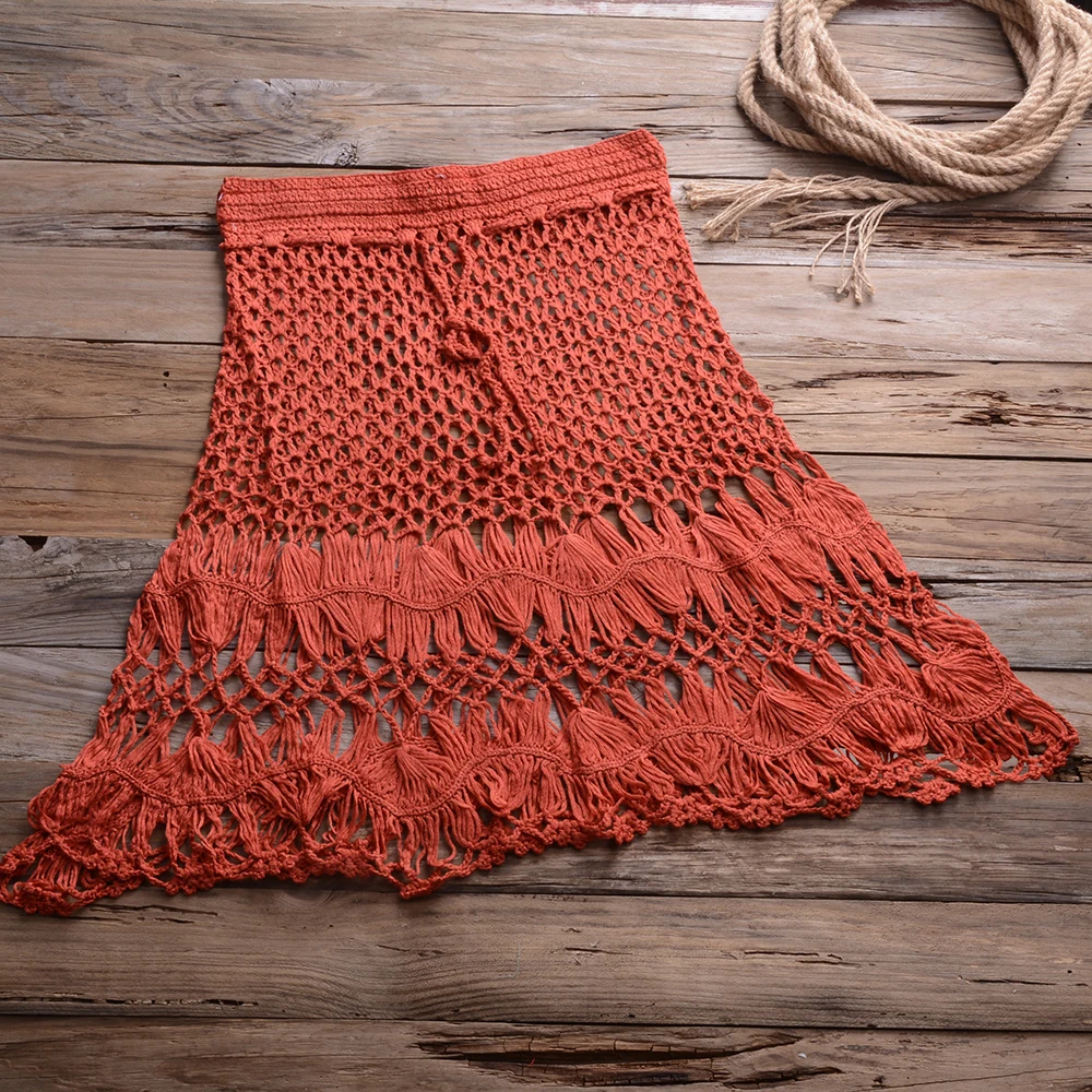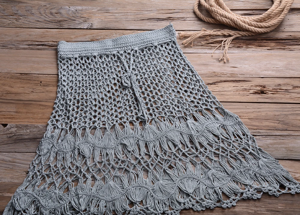 Женский вязаный кроп-топ с открытыми плечами и юбка, комплект из двух предметов, бикини, пляжная одежда в стиле бохо, на шнуровке, лето 2020