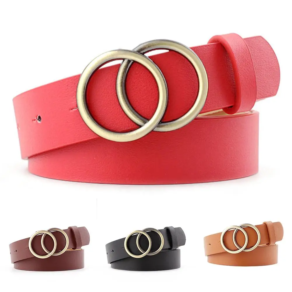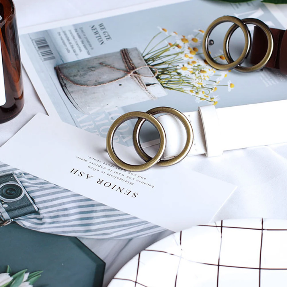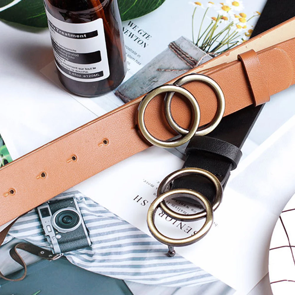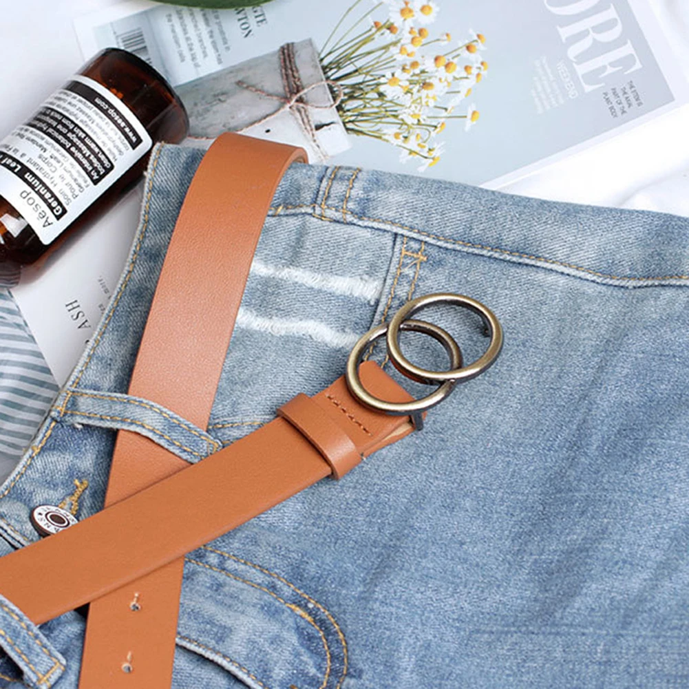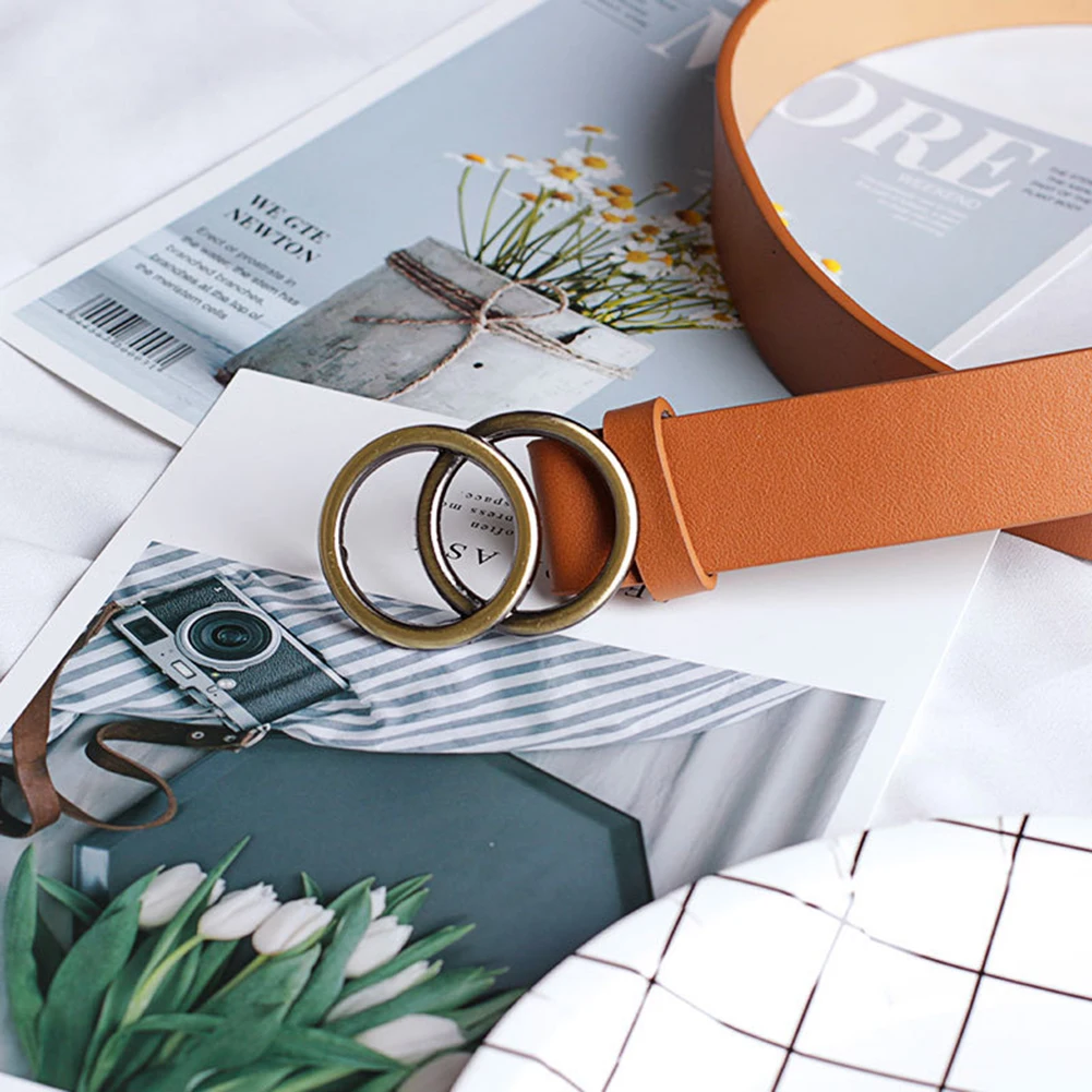 Ремень женский из искусственной кожи с двойной круглой пряжкой
