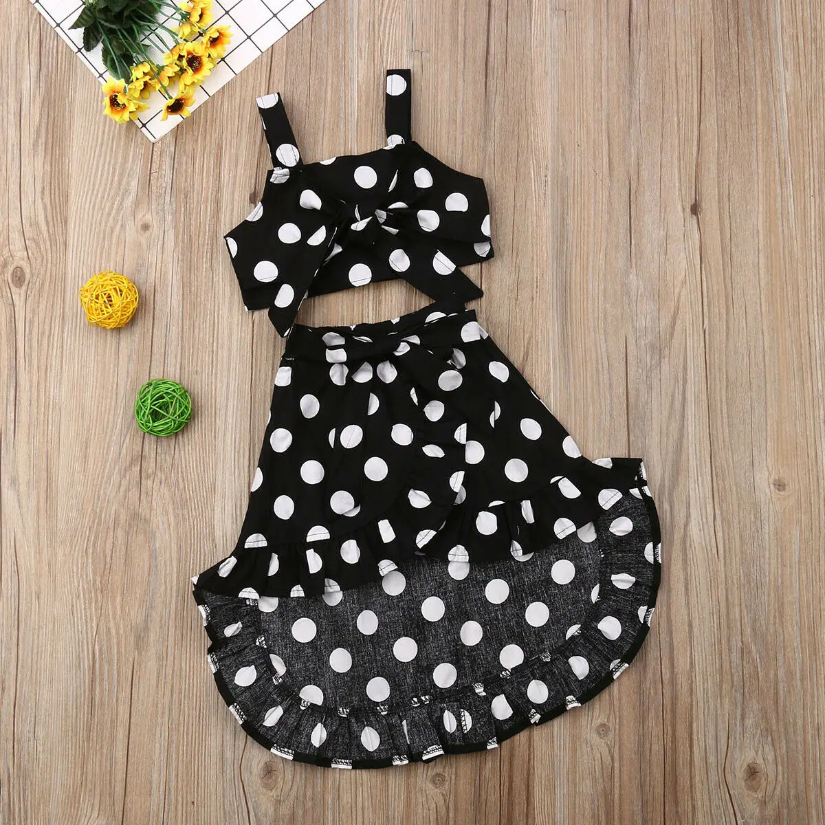 От 1 до 6 лет Детская одежда для малышей, комплекты одежды для маленьких девочек нерегулярные в горошек; Юбки с бретелями + кроп-топы, 2 шт., комплекты одежды