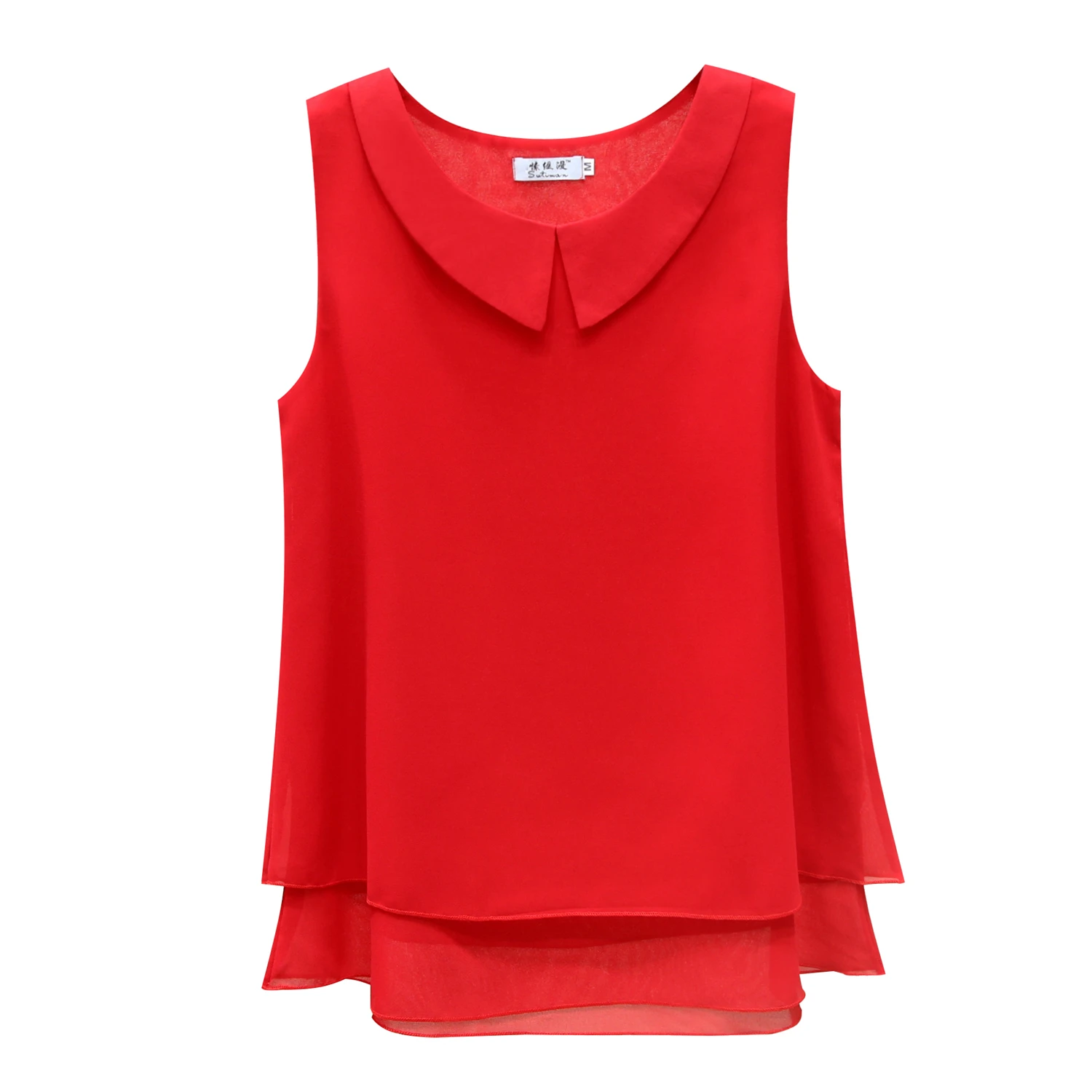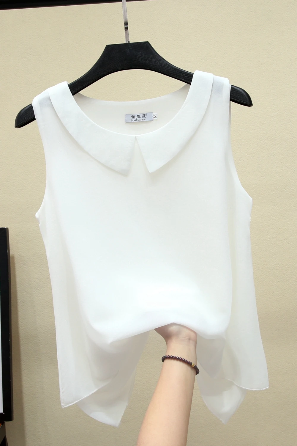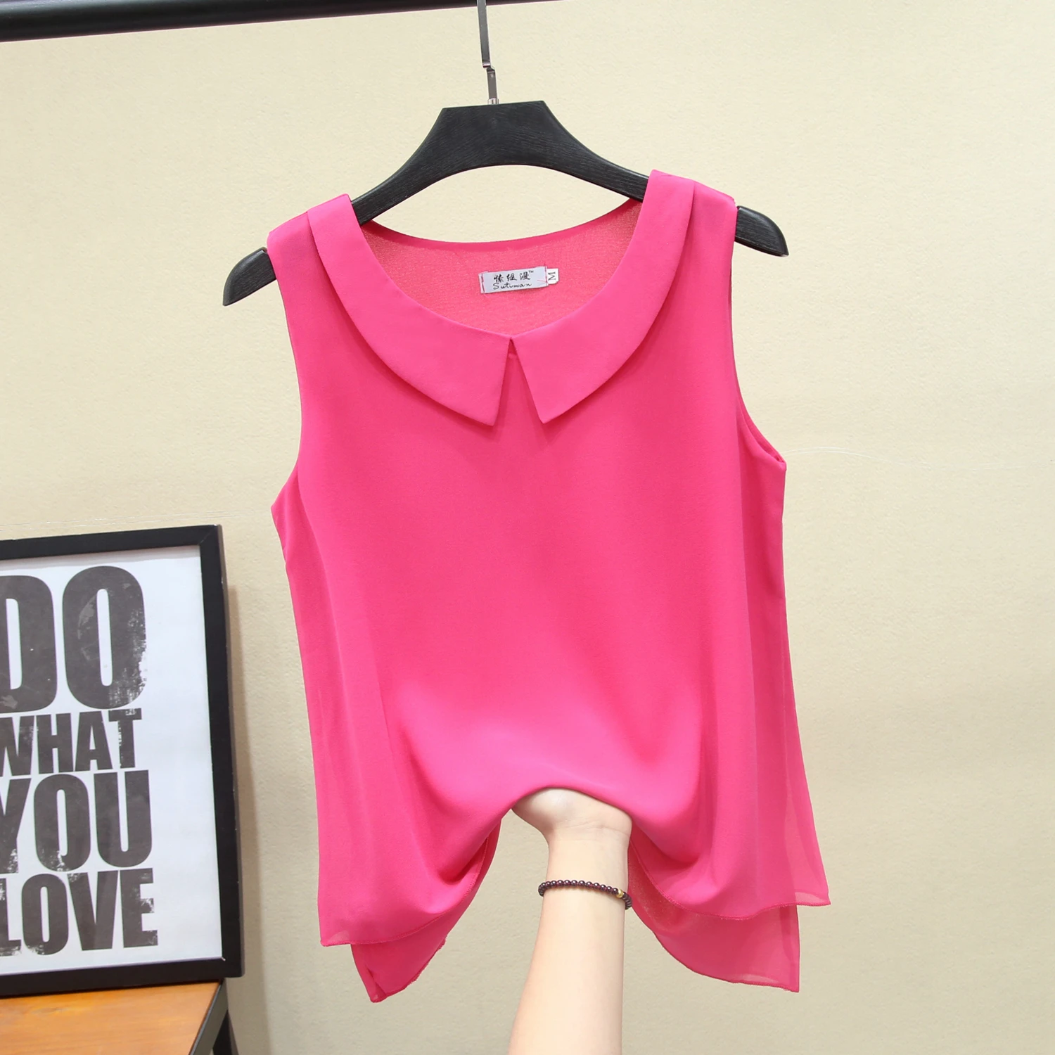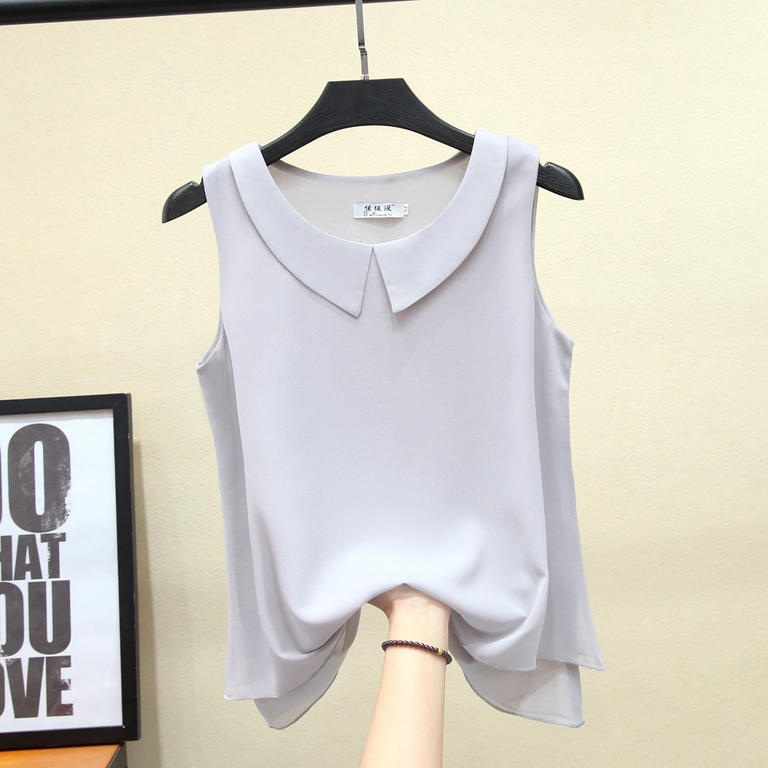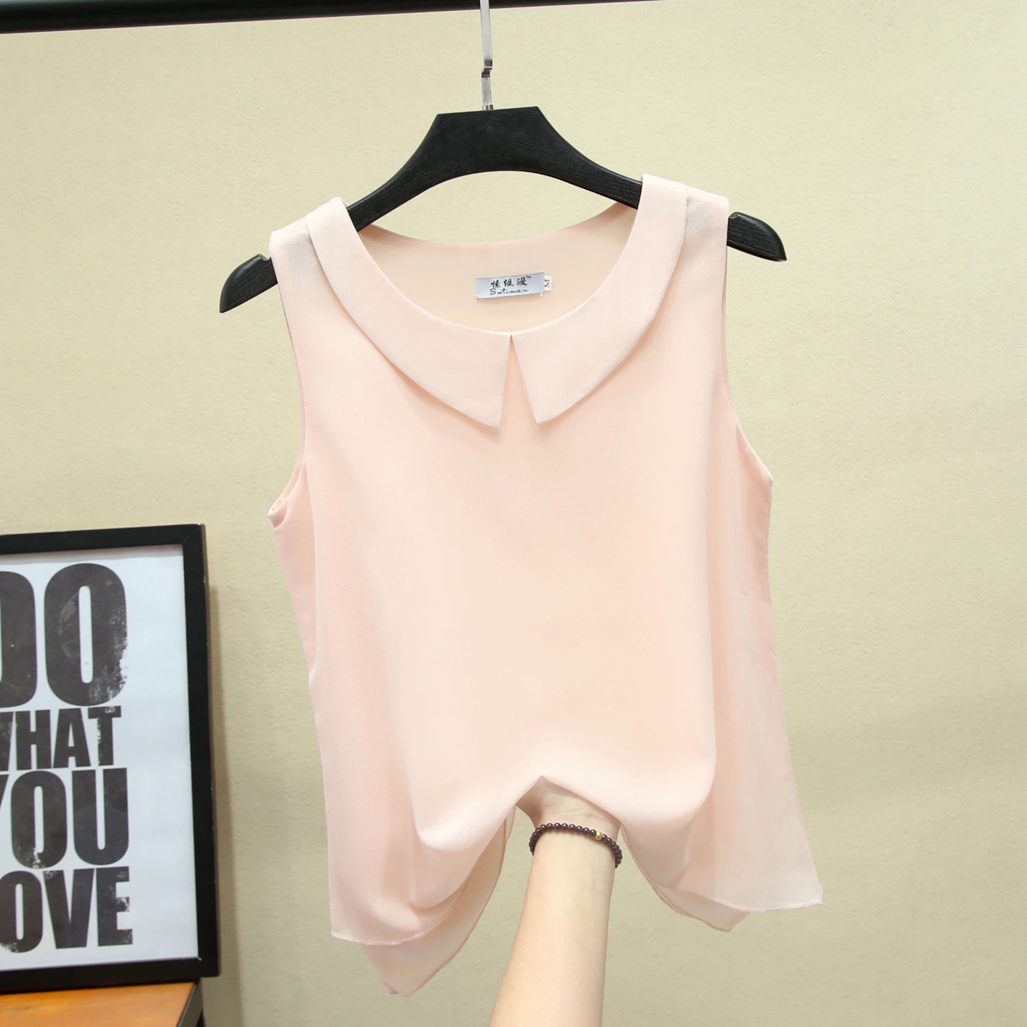 2021 Летняя Пляжная новая шифоновая рубашка 10 цветов с воротником Питер Пэн, блузка без рукавов, свободные белые женские топы большого размера