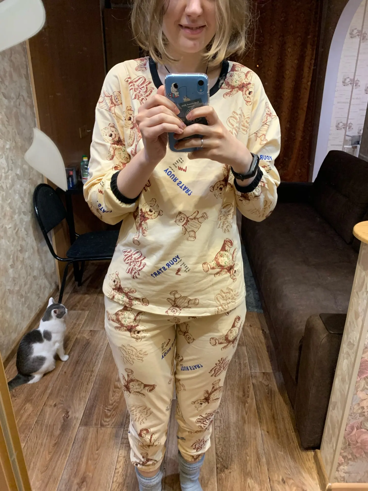 Очень крутая пижама! На рост 170 сидит так, как нужно: немного оверсайз.