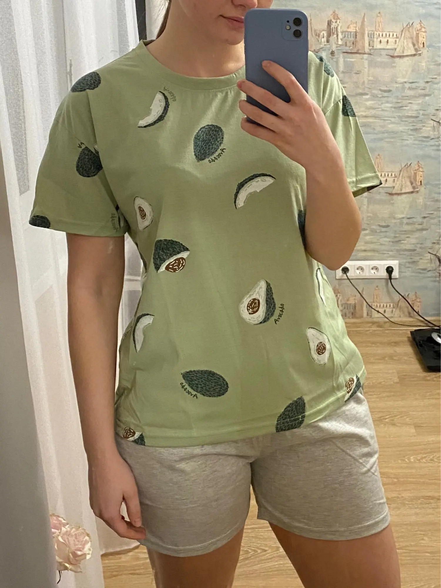 Комплект пижамный женский из 100% хлопка, короткий, с рисунком авокадо