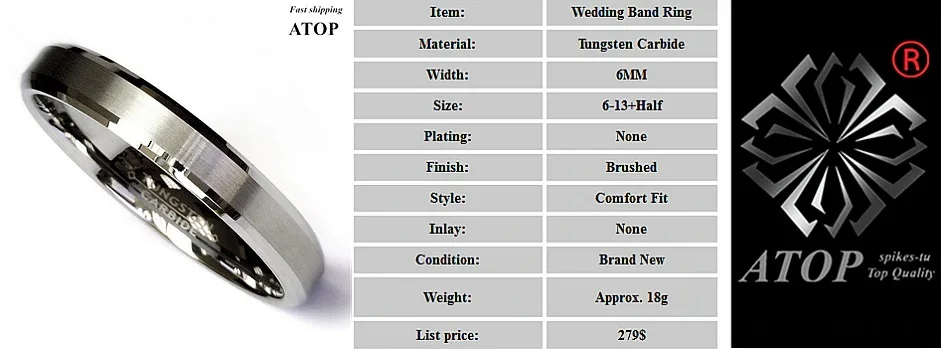 Мужское кольцо из вольфрама ATOP, обручальное кольцо 8 мм с матовой...