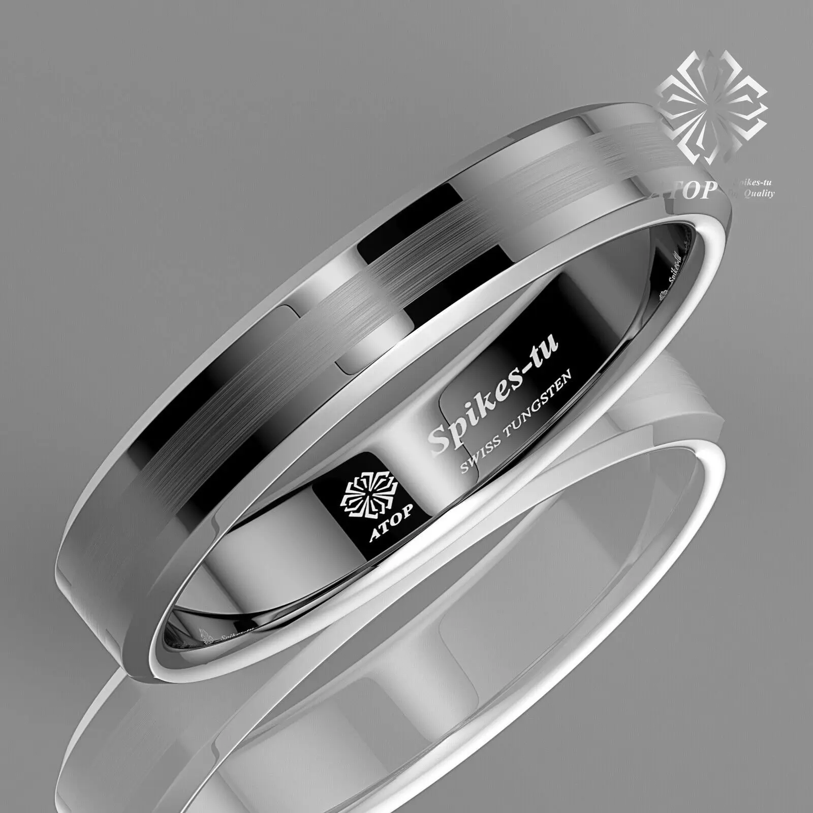 Мужское вольфрамовое кольцо ATOP 8 мм, серебристый, матовый, с инкр...
