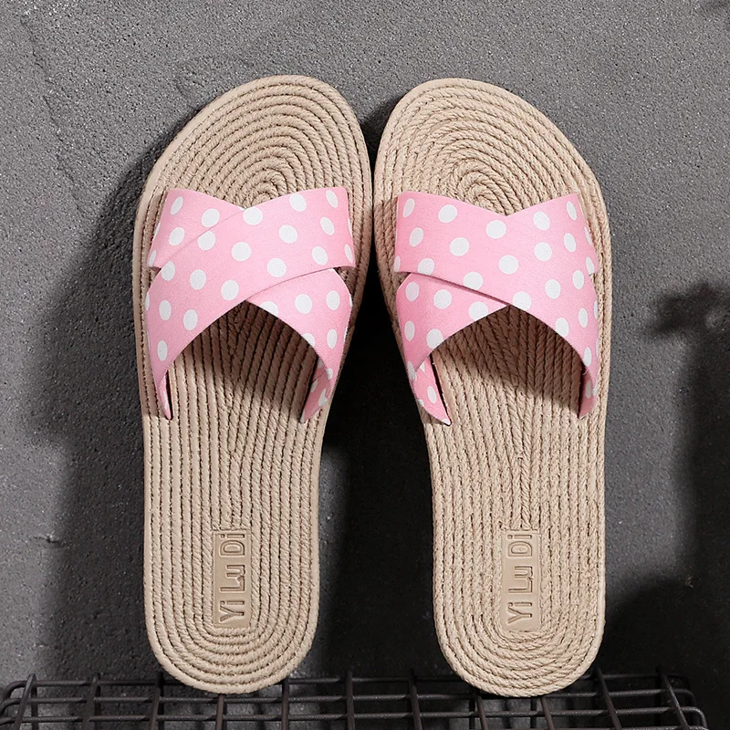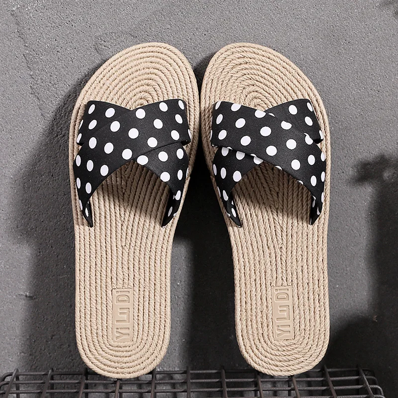 Женские сандалии в горошек, летние, Нескользящие, на плоской подошве, с открытым носком