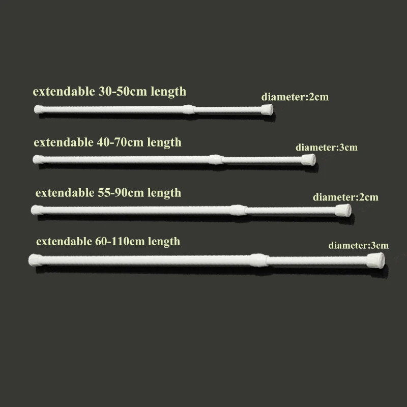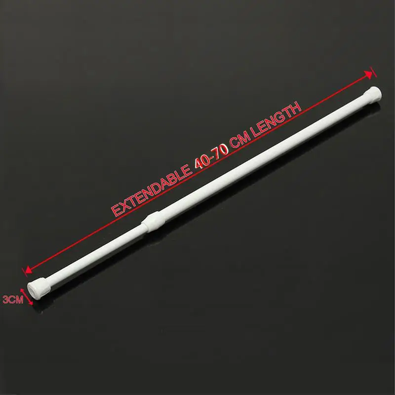 Особенности:Простая установка без каких-либо инструментов, без повреждений стен или дверей и оконТелескопический стержень может свободно регулировать телескопический прицел и больше не подвержен ограничениям жесткостиИспользуется для подвесные шторы/занавески для душа/гардеробаУдобно и просто в использовании:1) расширение длины столба до необходимой длины. (более 2 ~ 3 см до длины двери.)2) Изготовление шторы через стержень.3) фиксация одного конца столба, другого под углом 45 градусов с дверью.4) подтолкните другой конец столба вверх, Оставьте его параллельно двери.