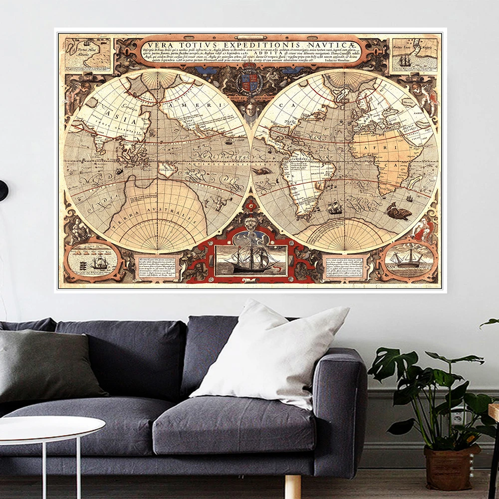 Картина на холсте Карта мира, Нетканая, в стиле ретро