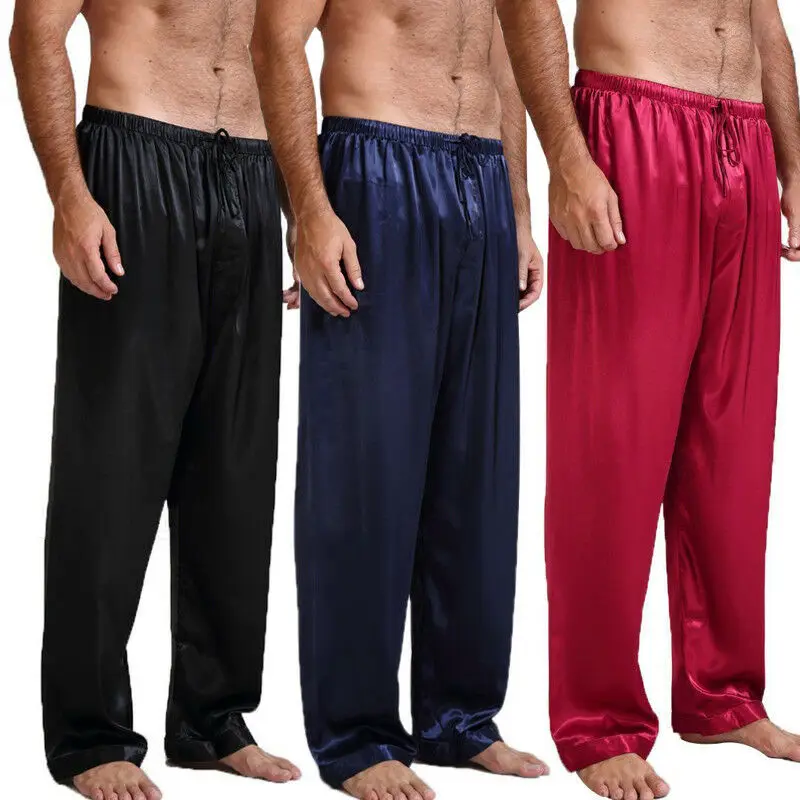 Пижама Мужская шелковая атласная, свободные штаны для сна, одежда для сна, брюки