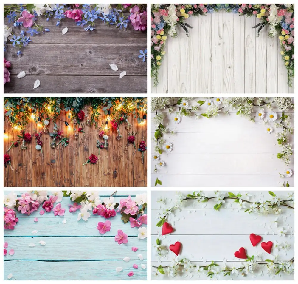 Виниловый фон для свадебной фотосъемки с изображением весенней деревянной доски цветов детских праздников дня рождения