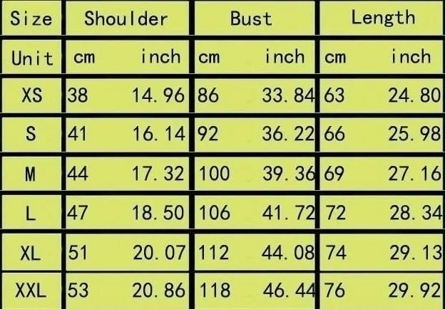 Материалы: хлопок Цвет: белый размер: S-M-L-XL-XXL Таблица размеров: маленький: плечо 41 см (16,14 дюйма) Грудь 92 см (36,22 дюйма) длина 66 см (25,98 дюйма) Средняя: плечо 44 см (17,32 дюйма) грудь 100 см (39,36 дюйма) длина 69 см (27,16 дюйма) Большая: Плечо 47 см (18,50 дюйма) Грудь 106 см (41,72 дюйма) длина 72 см (28,34 дюйма) XL: ширина плеч 51 см (20,07 дюйма) обхват груди 112 см (44,08 дюйма) Длина 74 см (29,13 дюйма) XXL: Плечо 53 см (20,86 дюйма) Грудь 118 см (46,44 дюйма) длина 76 см (29,92 дюйма)