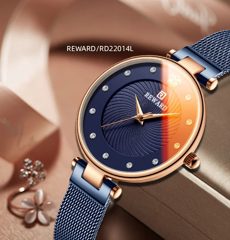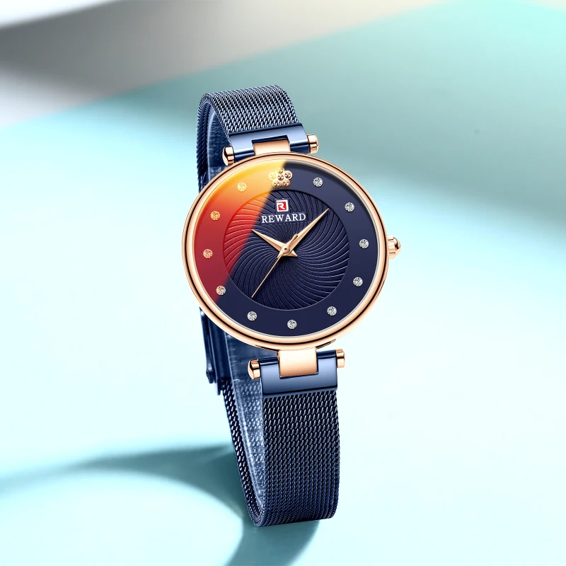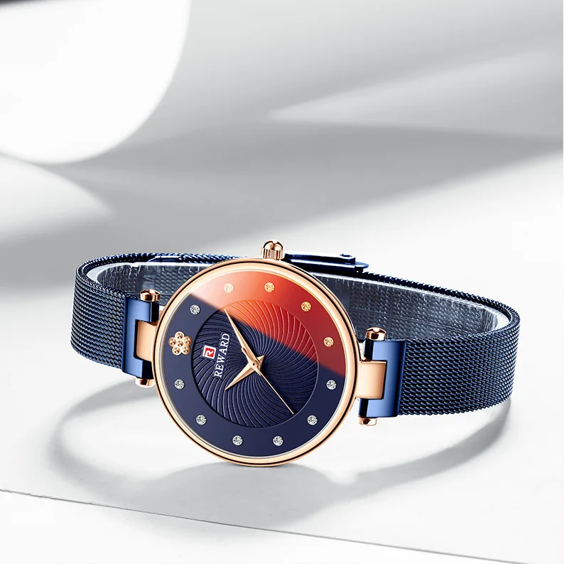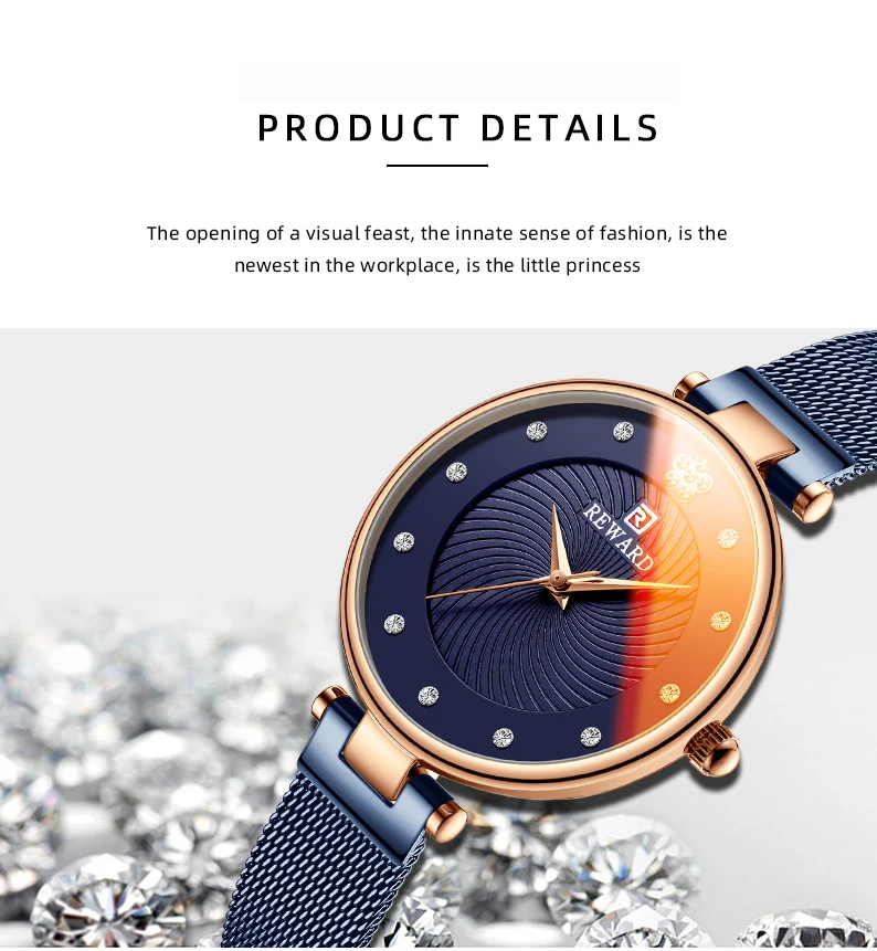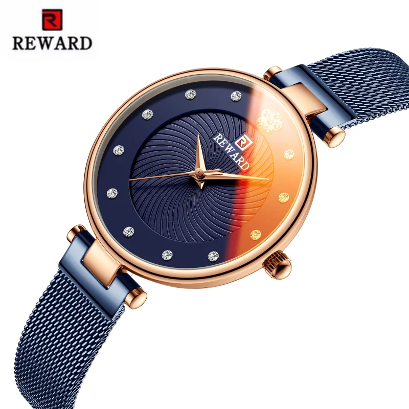 Награда, красочные роскошные женские часы с бриллиантами, ультратонкие, из нержавеющей стали, водонепроницаемые, модные часы с японским механизмом
