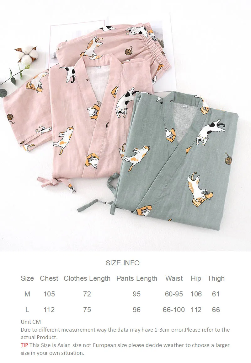 Пижама-кимоно Женская с принтом кота, домашняя одежда, длинные брюк...