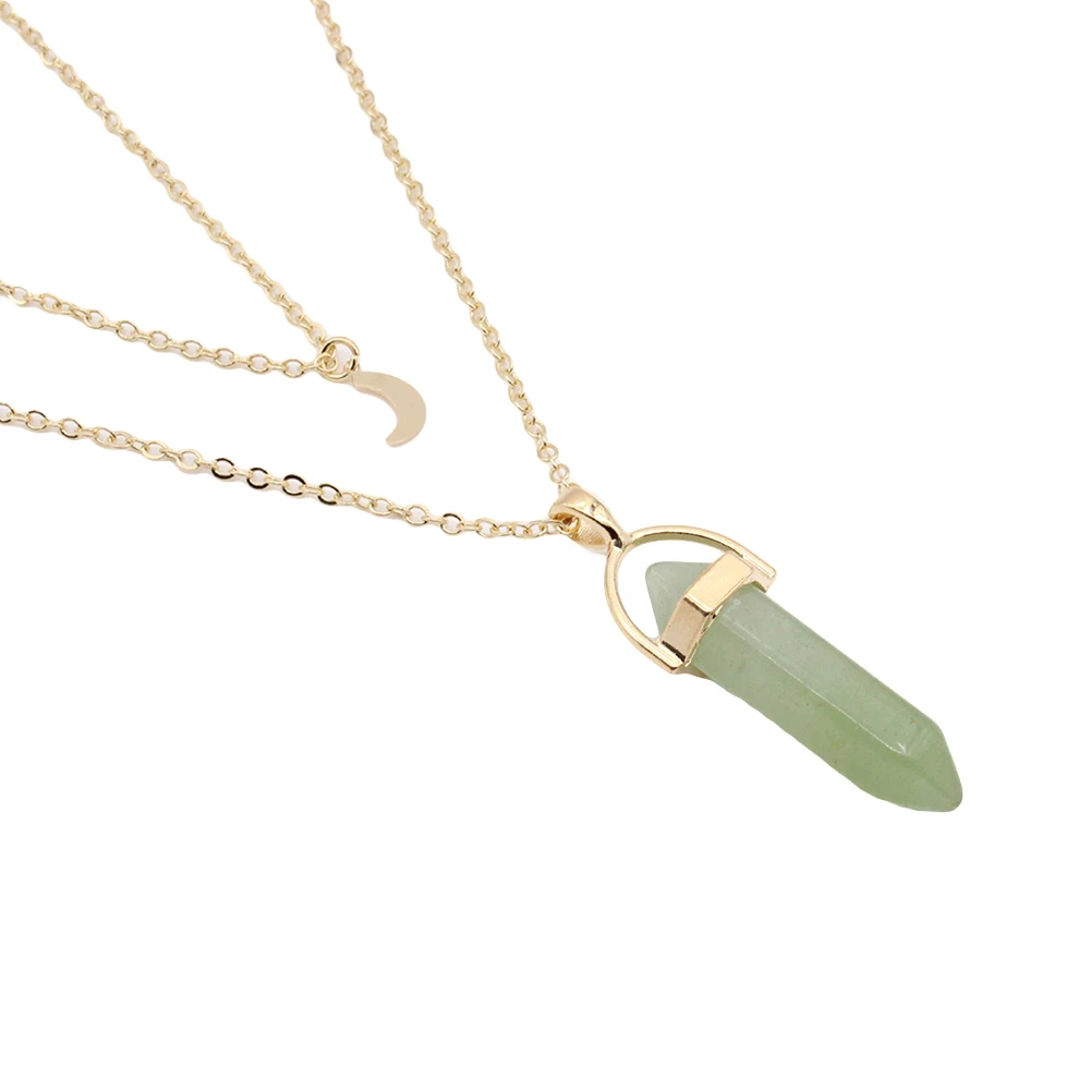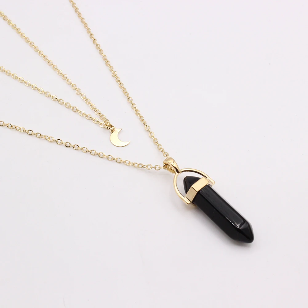 Женское Двухслойное ожерелье с шестигранной призмой и Луной