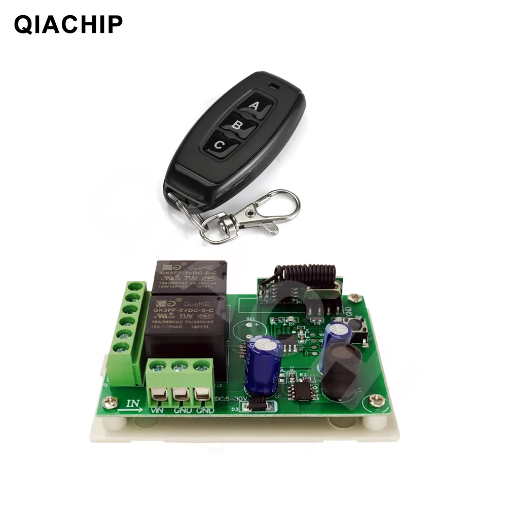 Универсальный беспроводной смарт-пульт дистанционного управления QIACHIP, 433 МГц, 6 в, 12 В, 24 В постоянного тока, 2 канала, модуль приемника, передатчик для двигателя лампы