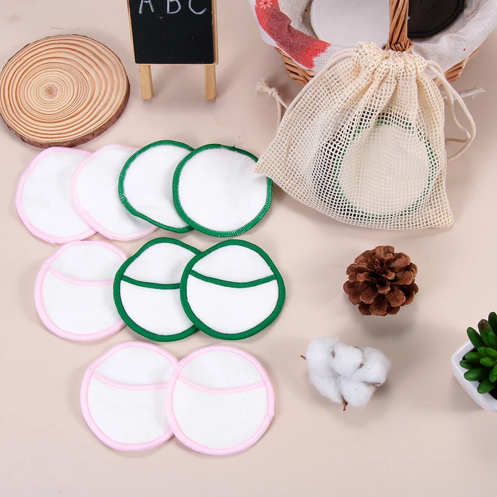 Абсолютно новый Материал: 70% бамбук 30% хлопок Размер: 8*8 см Цвет: зеленый ободок или розовый ободок или чисто черный или чисто белый Количество: 5 шт. с сумкой или без мешка Моющиеся и многоразовые бамбуковые ватные диски. Идеально подходит для снятия макияжа и очищения лица. Каждая подушечка имеет вставку для удобства во время использования подушечек. Каждый заказ поставляется с многоразовым мешком для стирки, чтобы легко мыть ваши многоразовые ватные диски в стиральной машине для легкого повторного использования.
