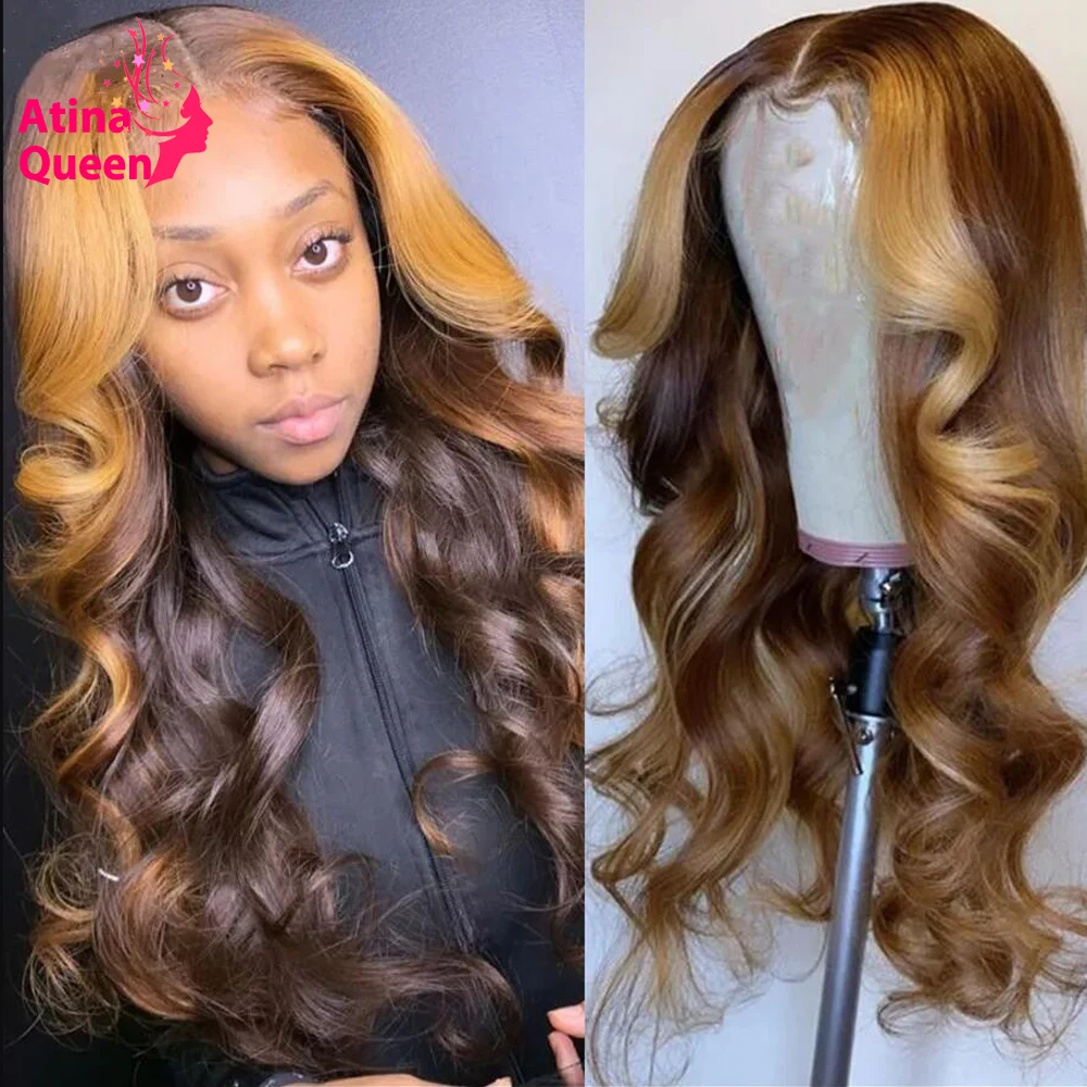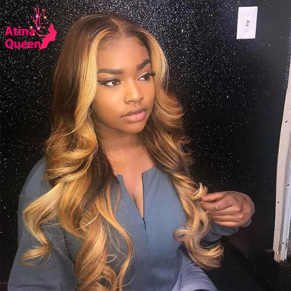 Эффектом деграде (переход от темного к Мёд блондинка 250% глубокий глубокая волна HD прозрачный 13x6 Синтетические волосы на кружеве парики из натуральных волос на кружевной детскими волосами предварительно Реми бразильские пучки