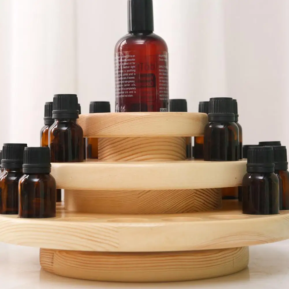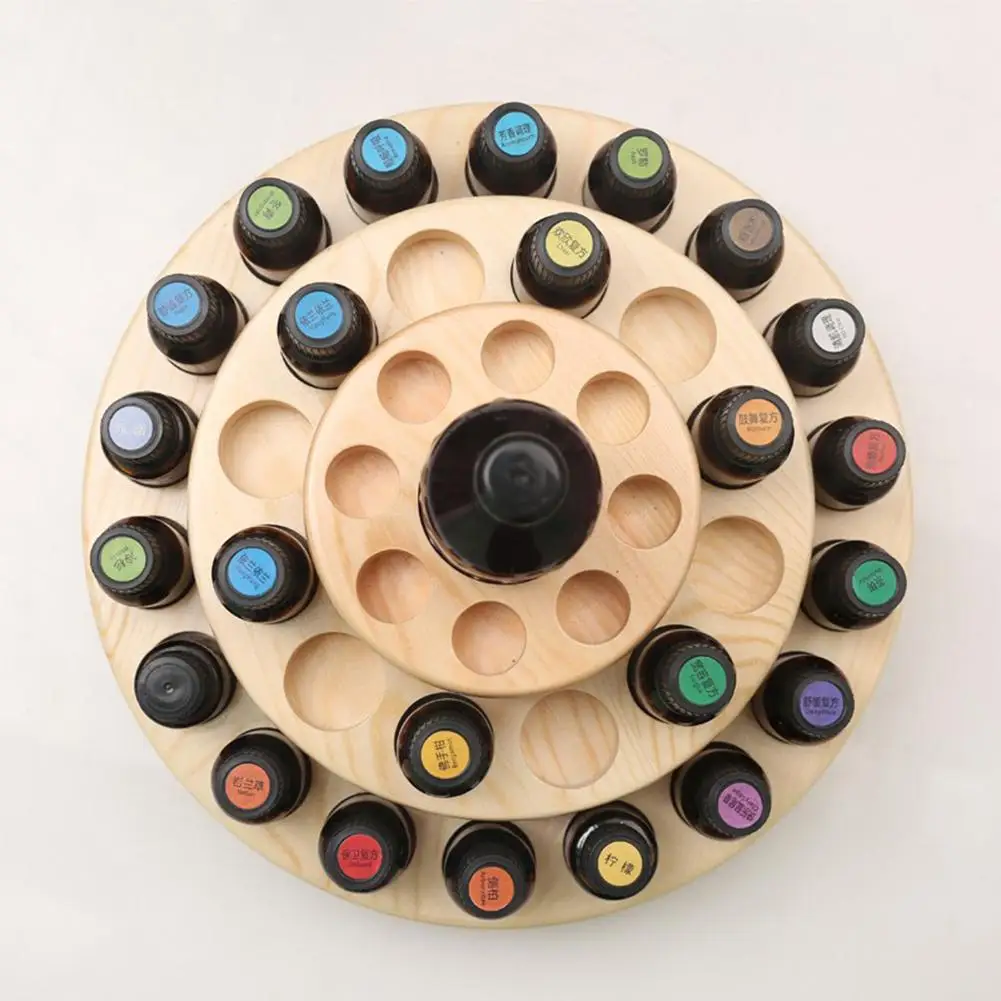 Высококачественная трехслойная коробка для хранения эфирных масел, 39 ячеек, круглая деревянная подставка