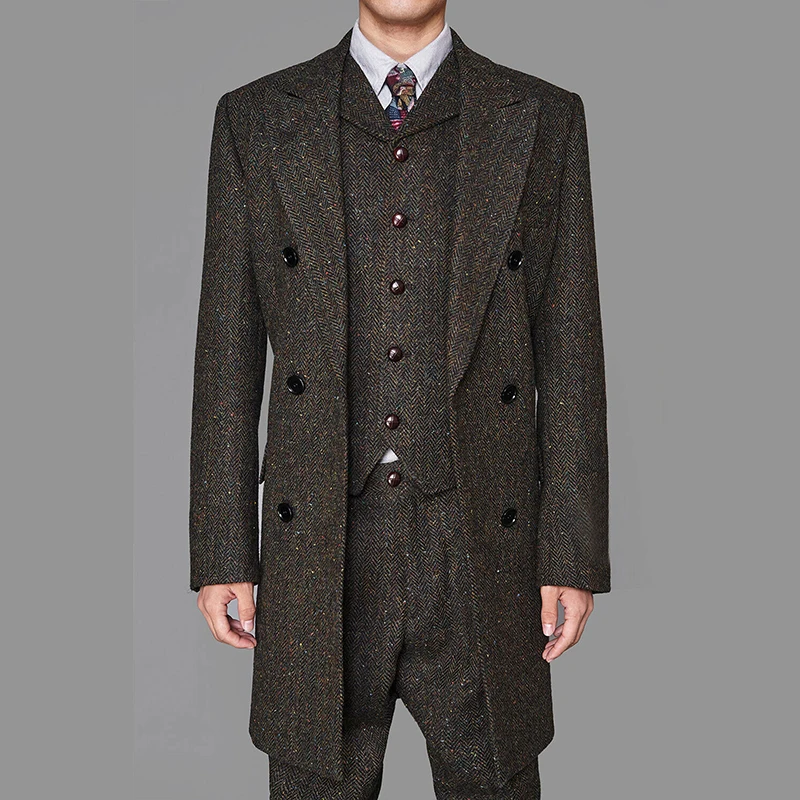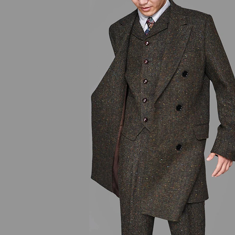 Костюм мужской зимний твидовый в стиле ретро, пиджак, брюки, жилет