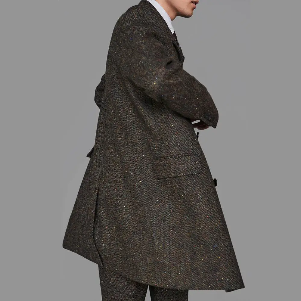 Новый коричневый твидовый мужской костюм для свадьбы на заказ, Блей...
