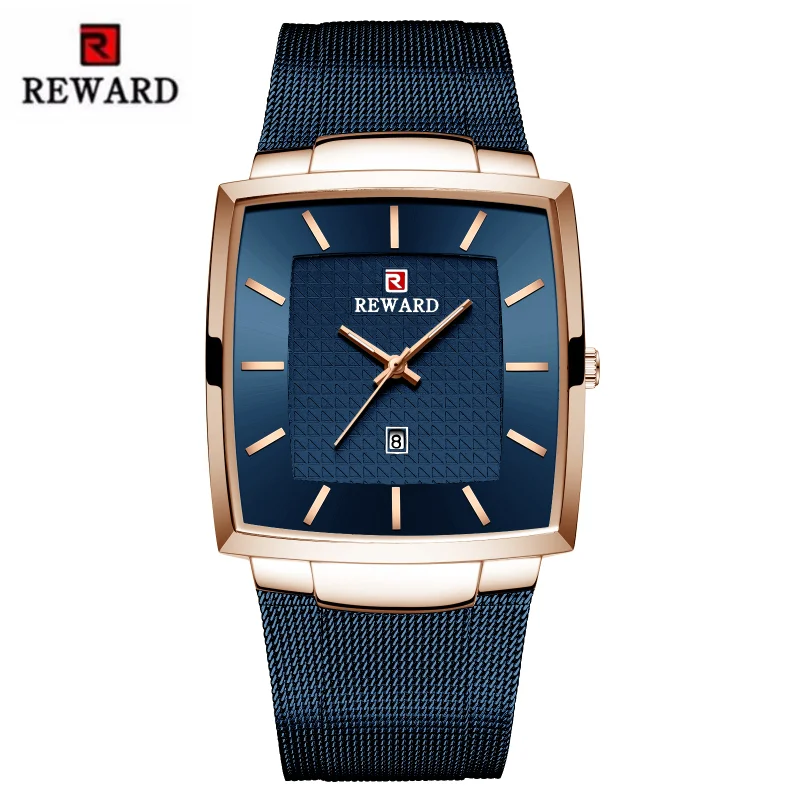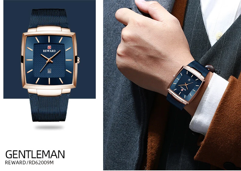 Мужские часы награда Топ бренд Роскошные бизнес часы Авто Дата Квадратный Циферблат Водонепроницаемые часы из нержавеющей стали мужские часы reloj hombre