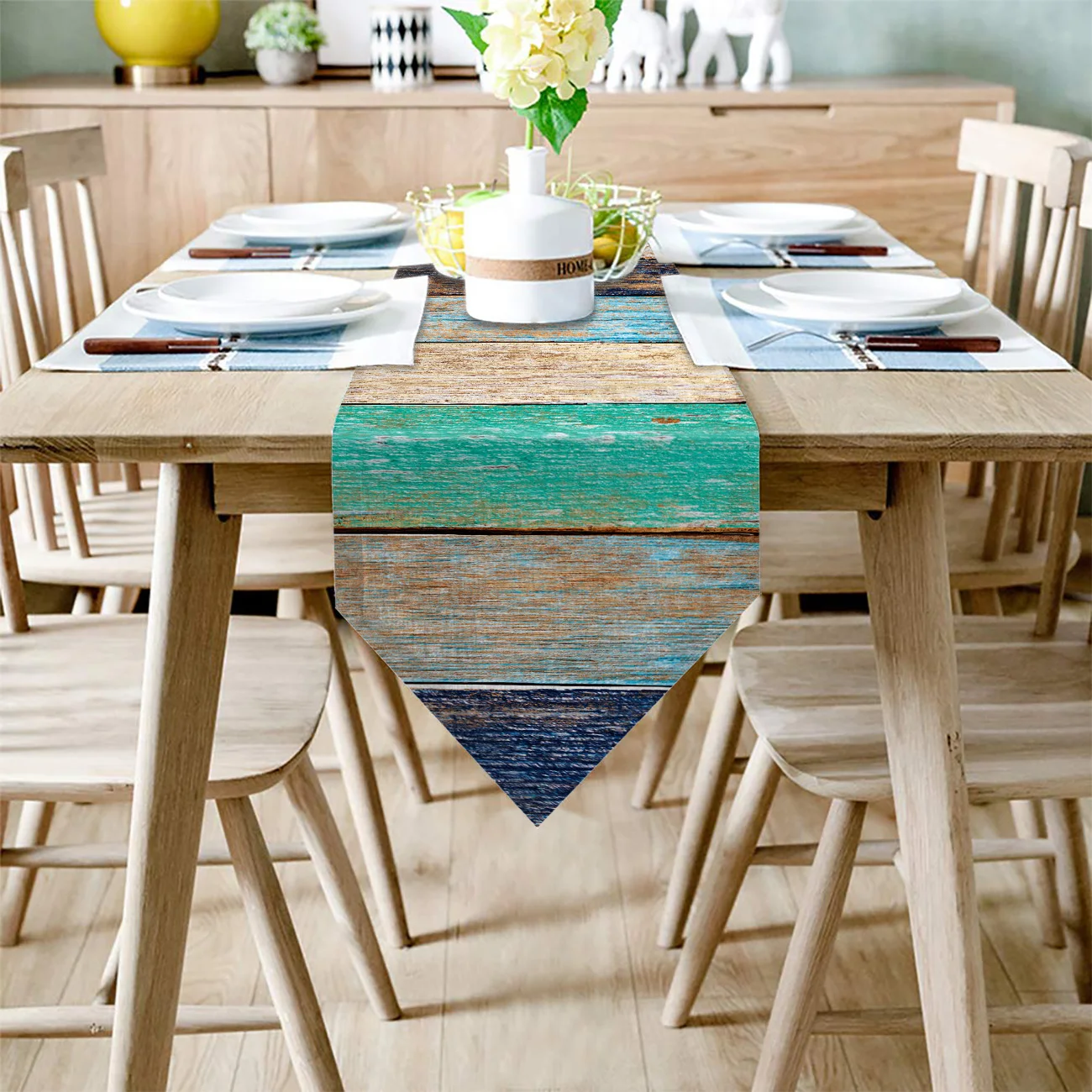 Современная винтажная скатерть с деревянной текстурой, креативная настольная дорожка, украшение стола, праздничный декор для стола
