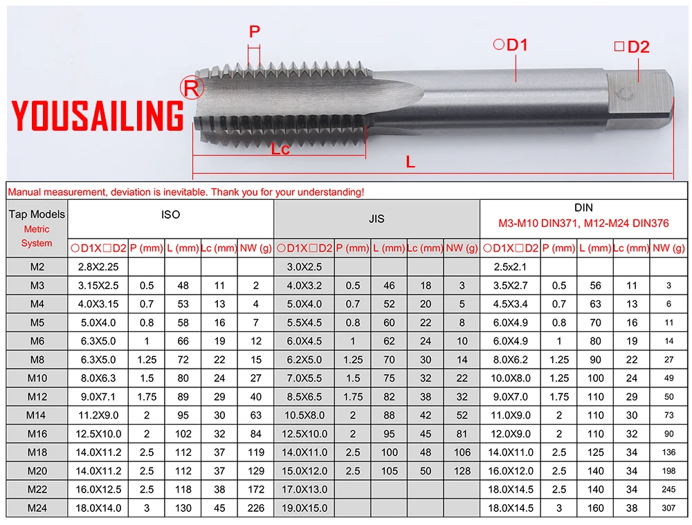 Метчики с резьбой 9542HSS, ISO или JIS или DIN, 7 шт., набор метчиков с резьбой M3-M12, промышленные метрические метчики