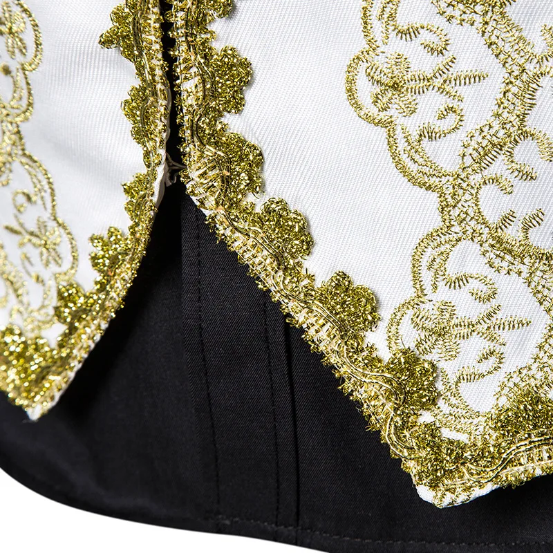 Стильный жилет в стиле барокко с золотой вышивкой, мужской облегающий черный жилет дворца, жилет, мужской костюм для сцены, выпускного вечера, театра, оперы