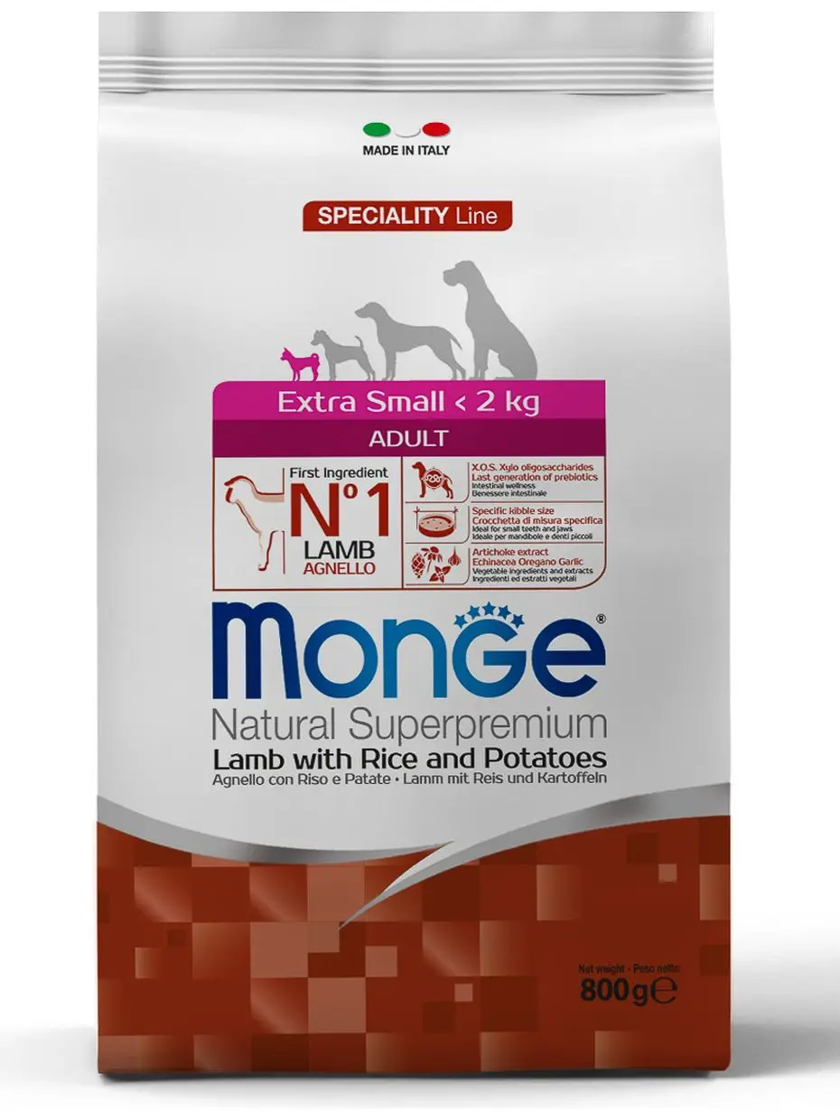 Monge Dog Speciality Extra Small для взрослых собак миниатюрных пород, Ягненок, 800 г.