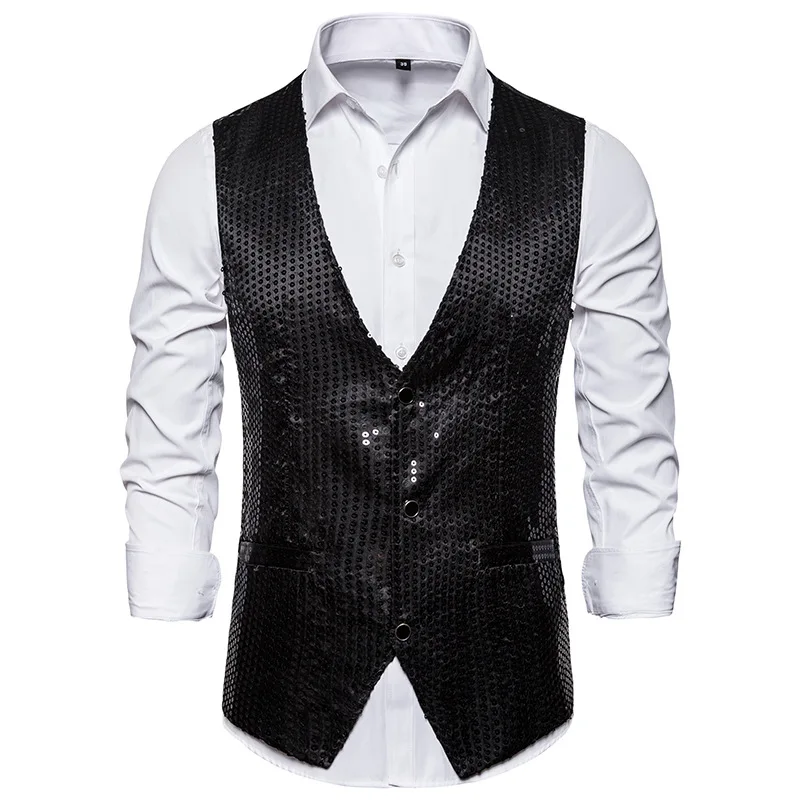 Блестящий жилет с золотыми блестками для мужчин, приталенный мужско...