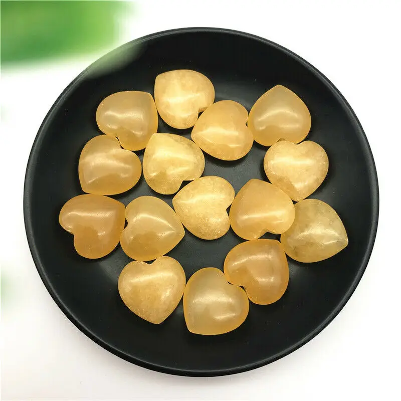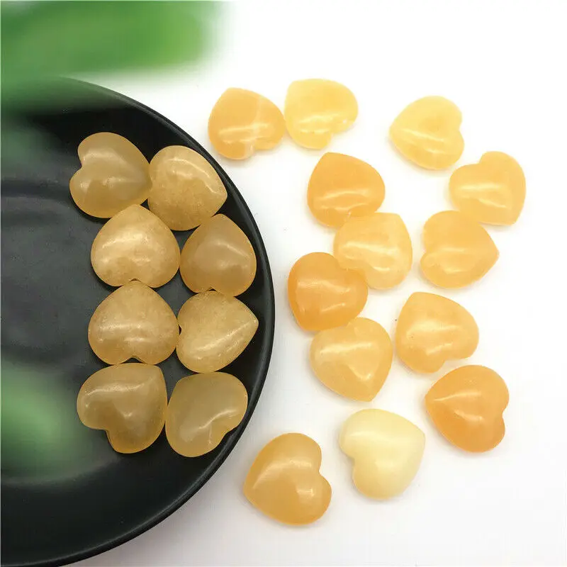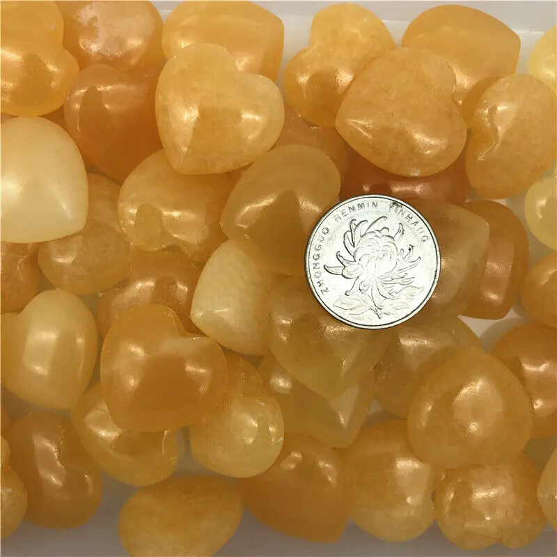 Оптовая продажа, 1 шт., натуральный желтый топаз, нефрит, полированный в форме сердца, хрустальный камень, лечебный декор, подарок, натуральные кварцевые кристаллы