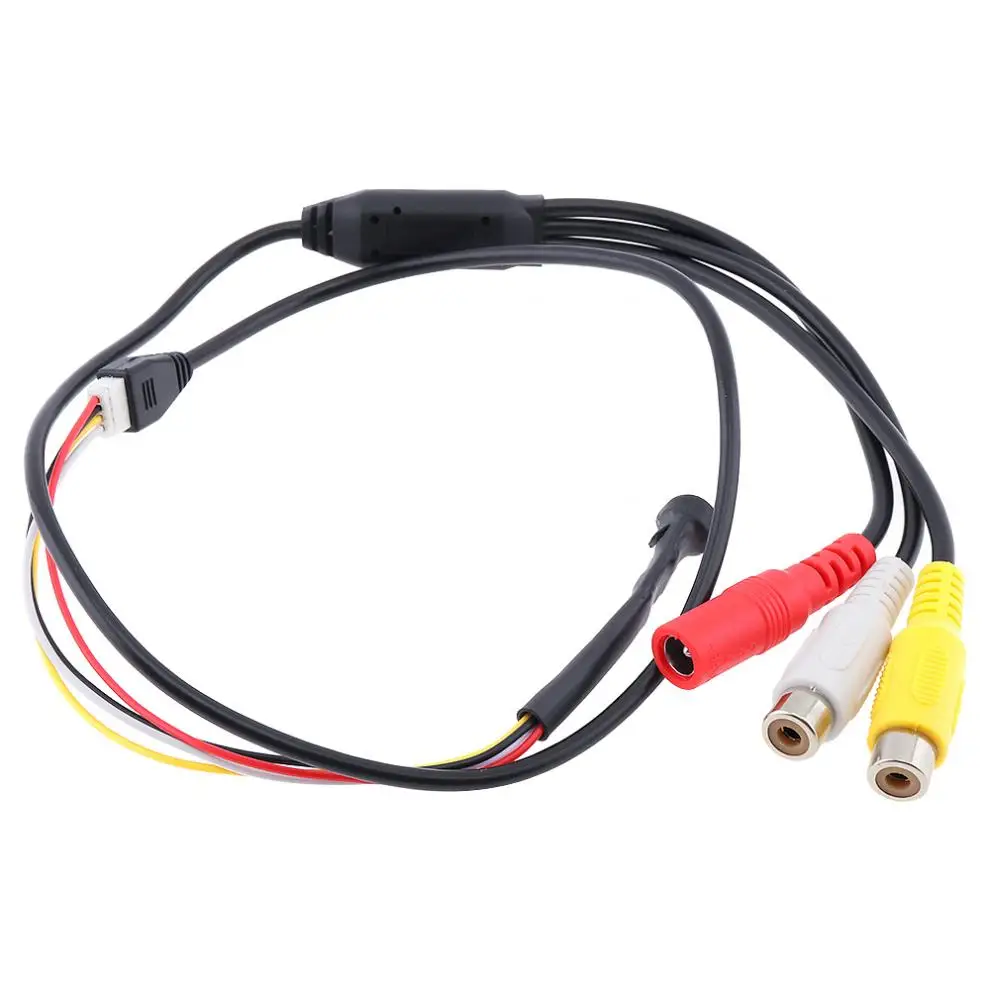 3 линии камеры: красная линия соединяет питание/желтая линия соединяет видео/белая линия соединяет аудио