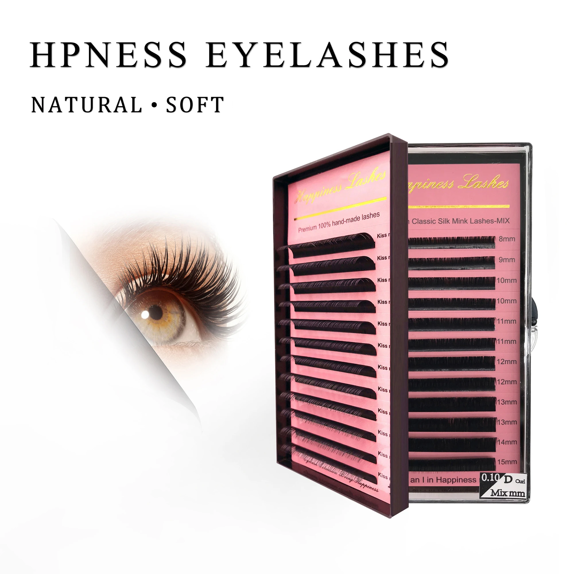 Ресницы для наращивания с собственным логотипом, Индивидуальные Классические мягкие натуральные ресницы, 100% ручная работа, все размеры