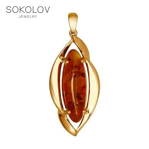 Подвеска SOKOLOV из серебра с янтарём (пресс.), Серебро, 925, Оригинальная продукция