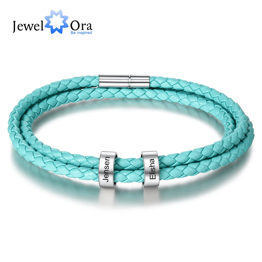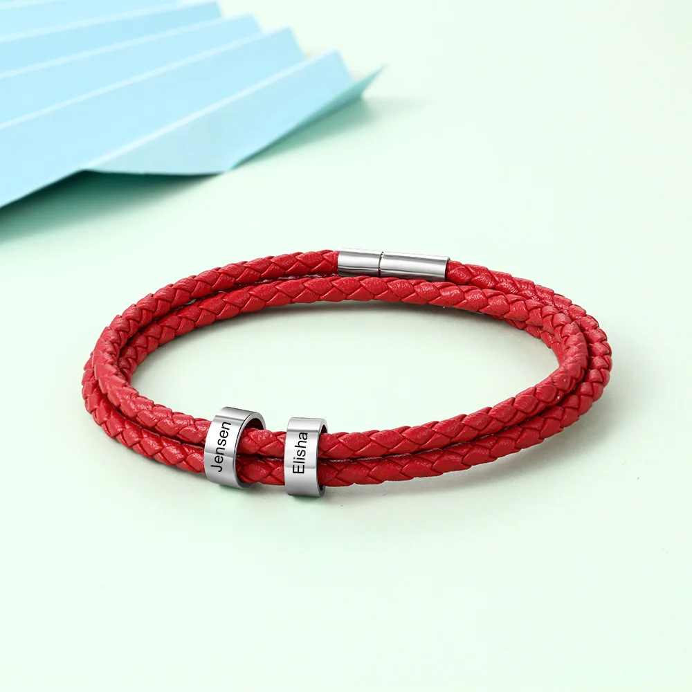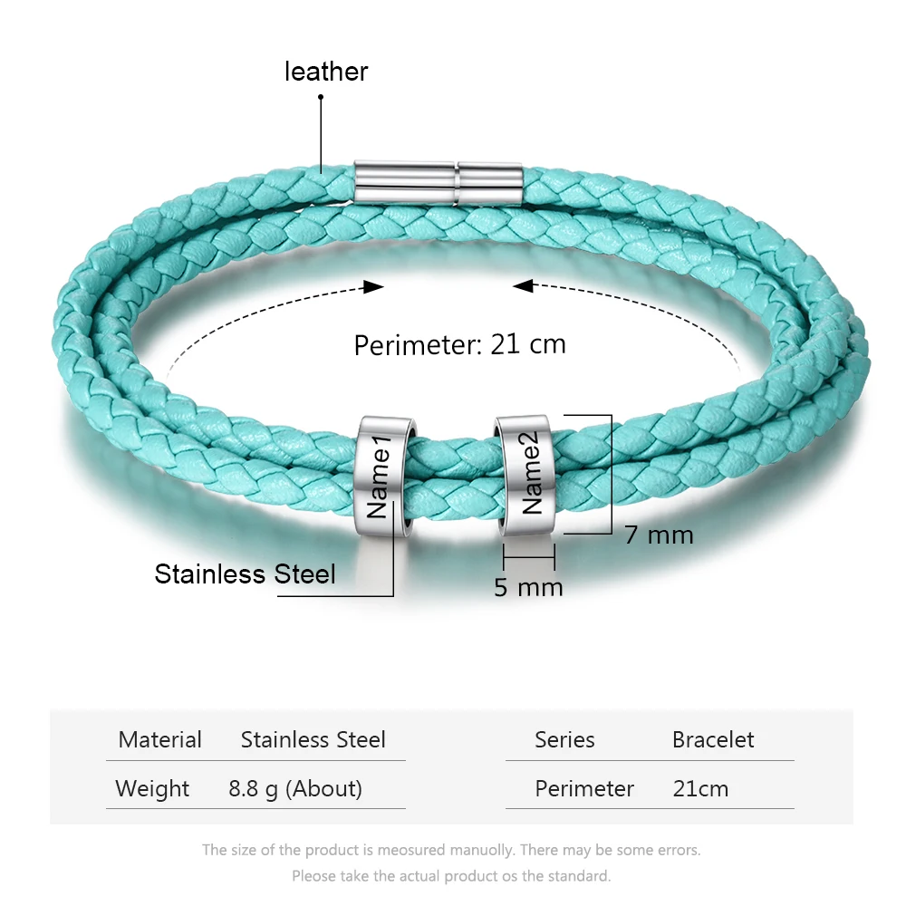 Персонализированные 2 имени бусы Шарм Браслеты для женщин мужчин унисекс на заказ Гравировка Браслет из кожи и нержавеющей стали подарок для влюбленных